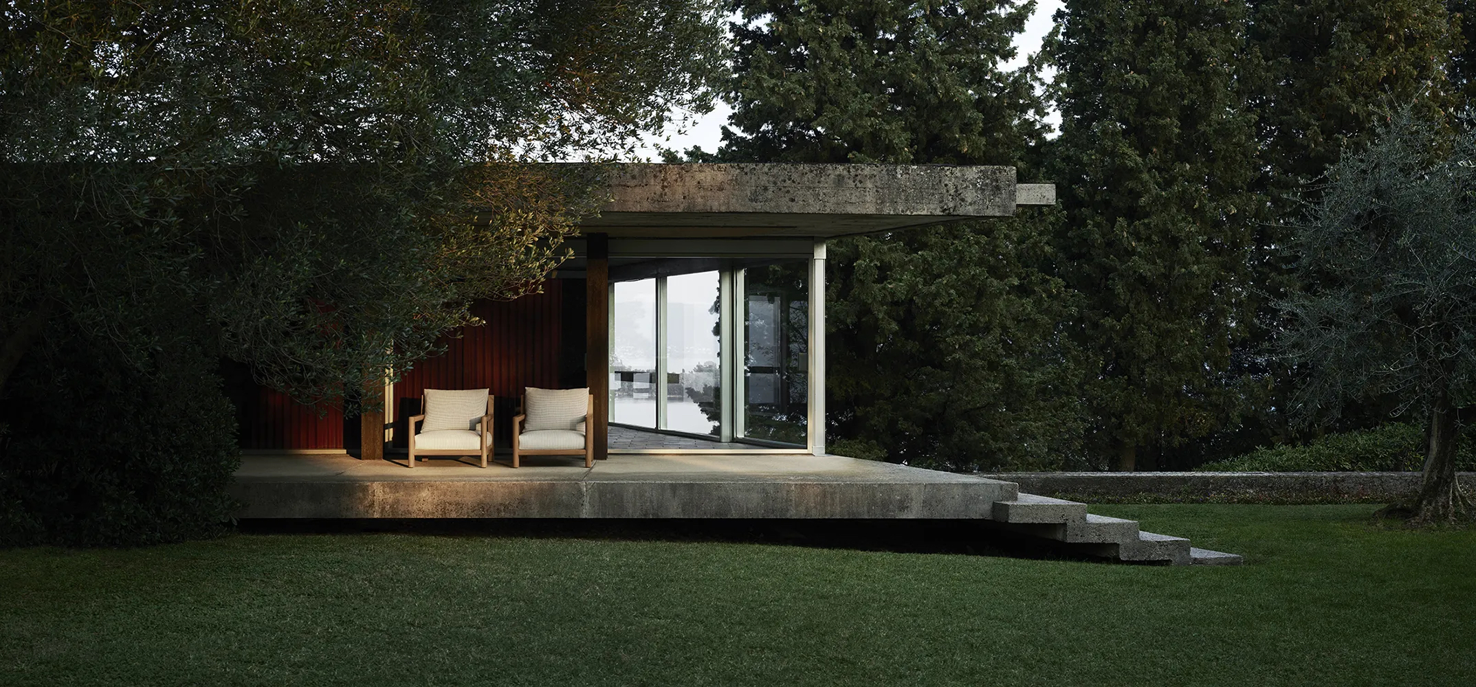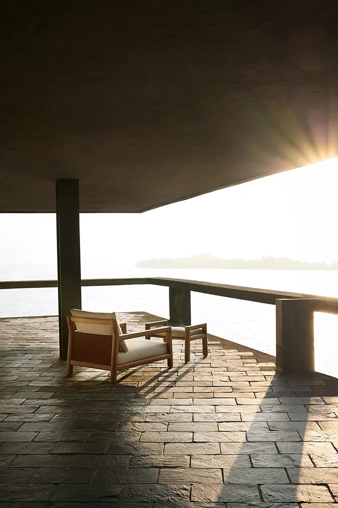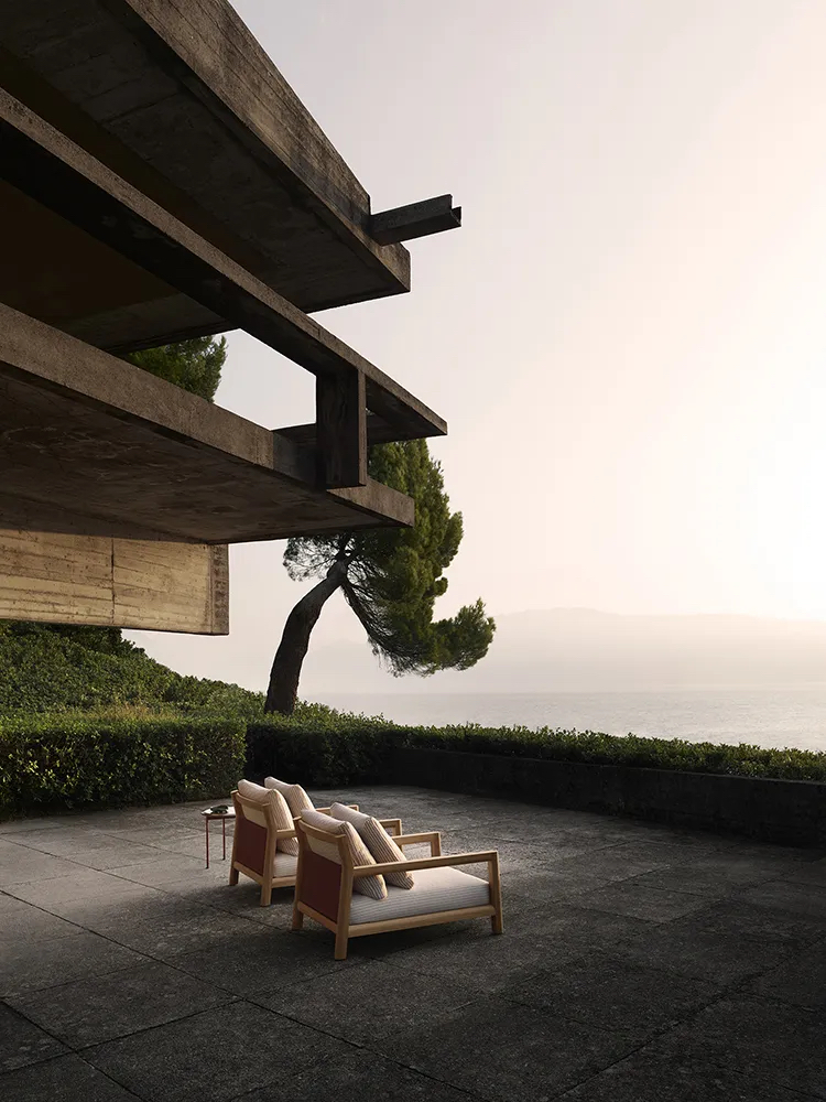 The Pablo Outdoor is the first outdoor collection designed by Vincent Van Duysen for B&B Italia. It is a complete collection which includes an armchair in two depths, sofa, and footrest and it is made of teak wood, the ideal material for outdoors.