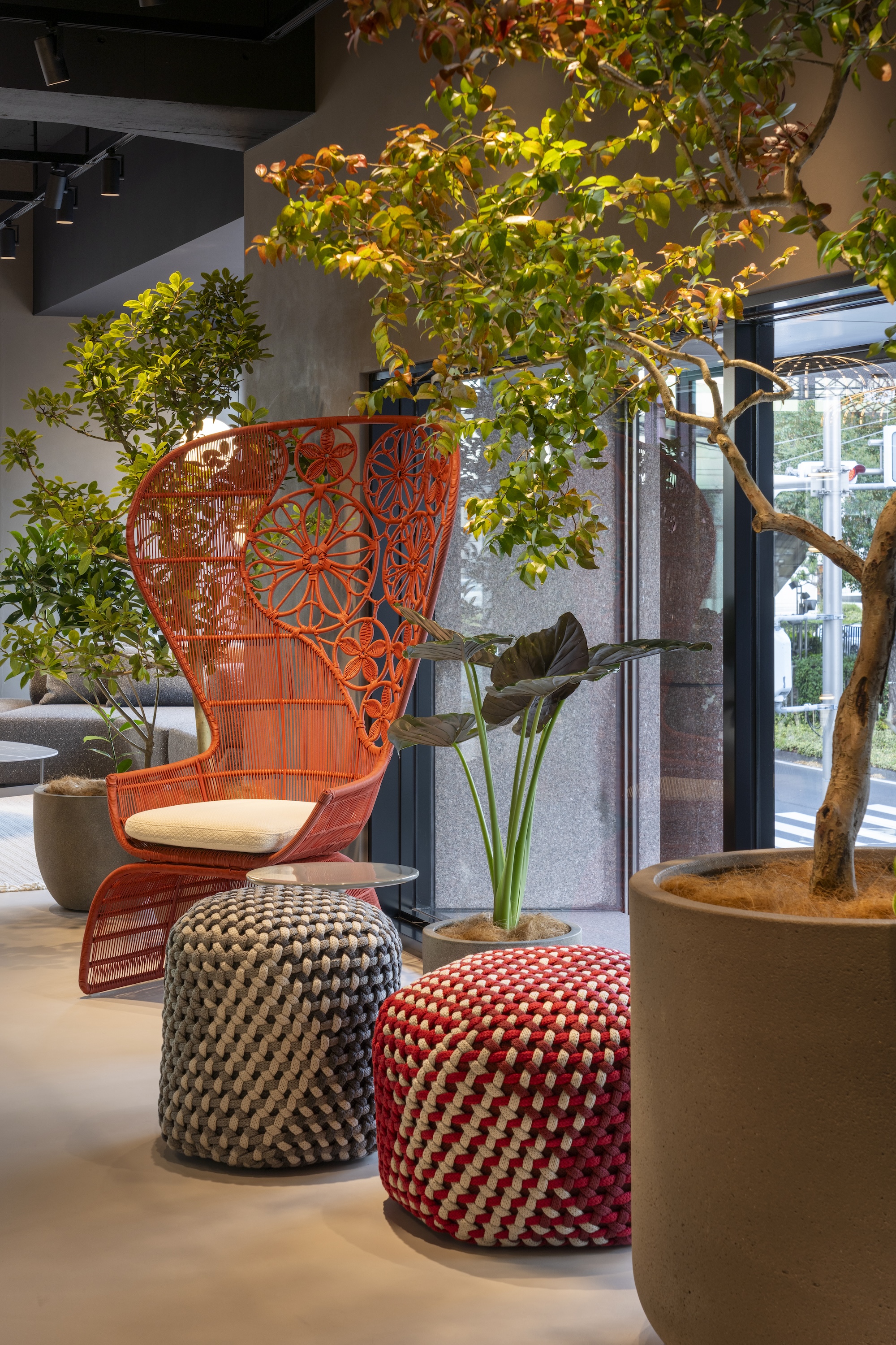 シーン別に広がる空間をアイコニックなソファやテーブルが彩り、