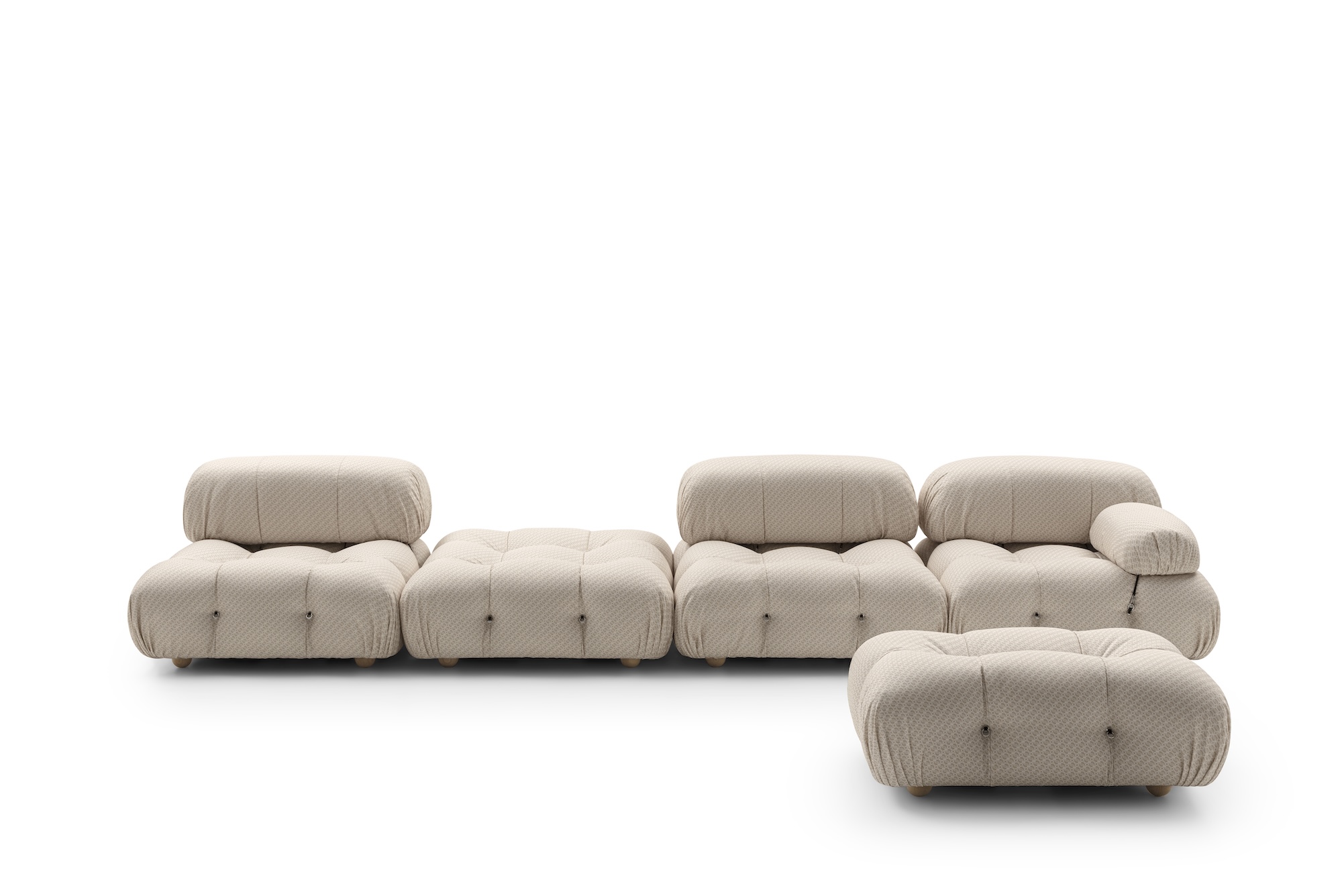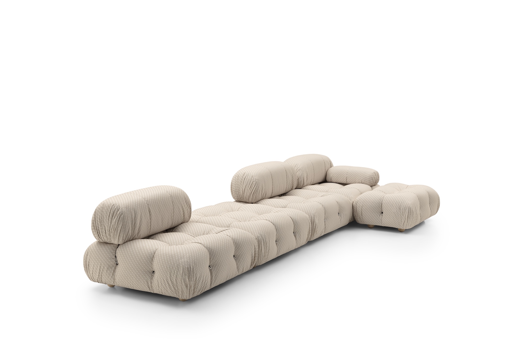 そして今、1970年に最初にデザインされ、50年後の2020年に復活したソファシステムであるCamaleondaの新バージョンとして進化を遂げました。このソファは、構造と自然の調和を追求する現代的なデザインとなっています。