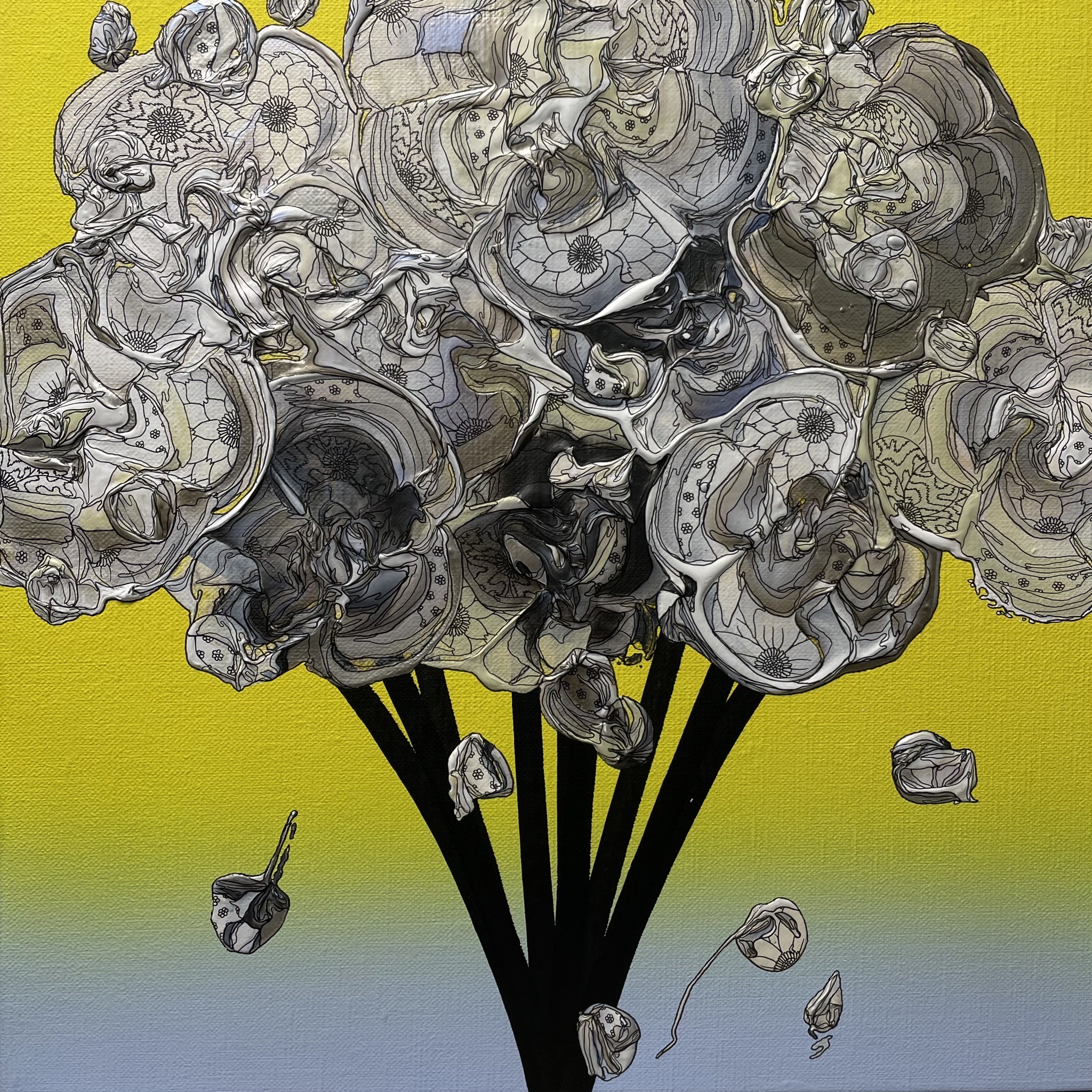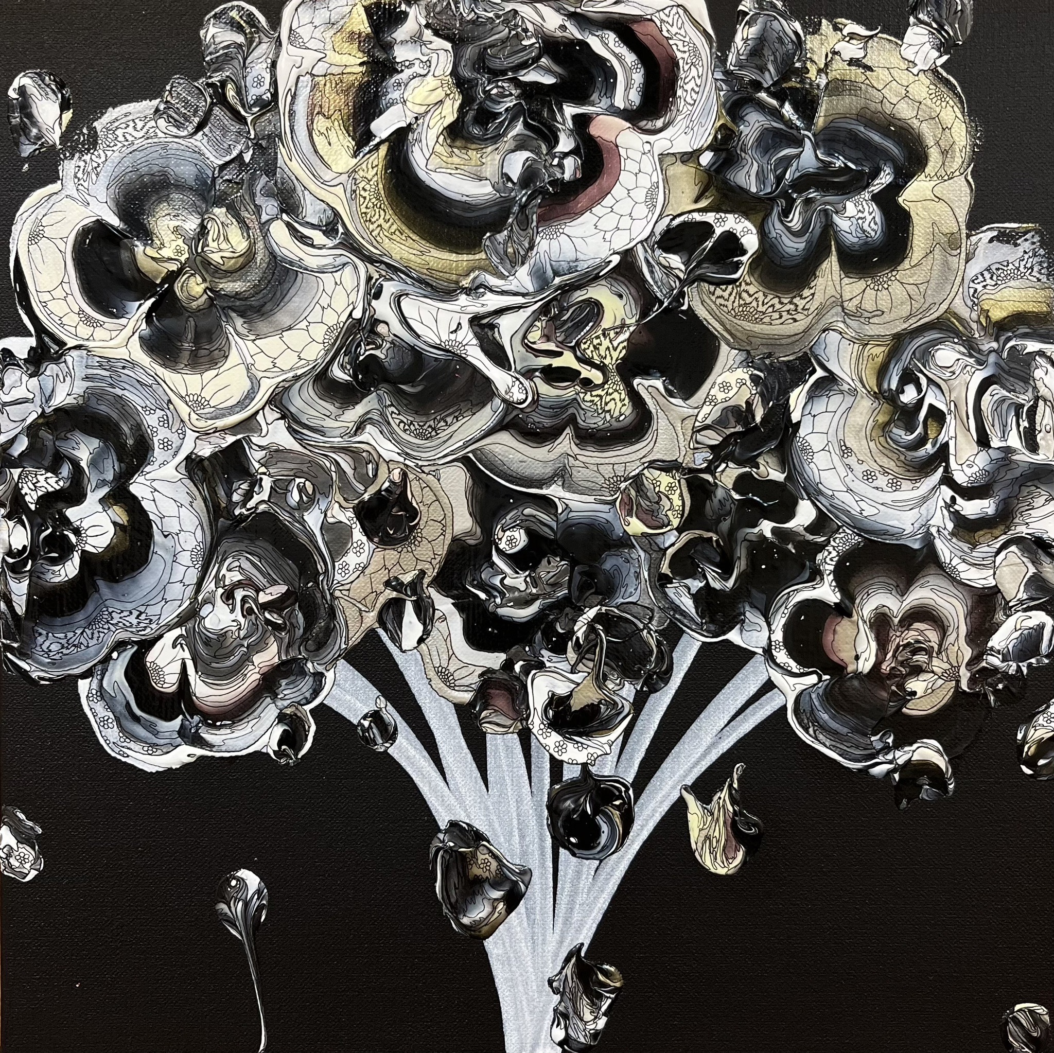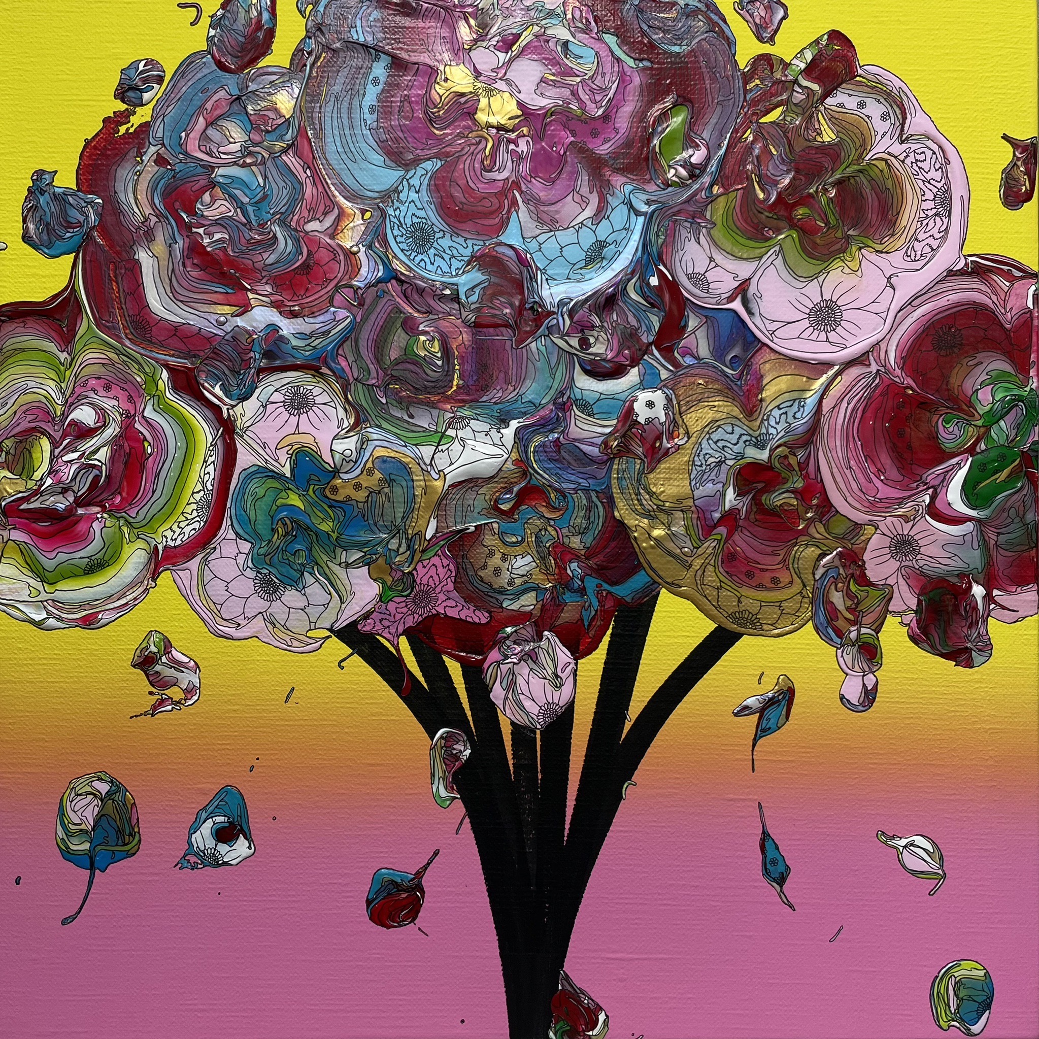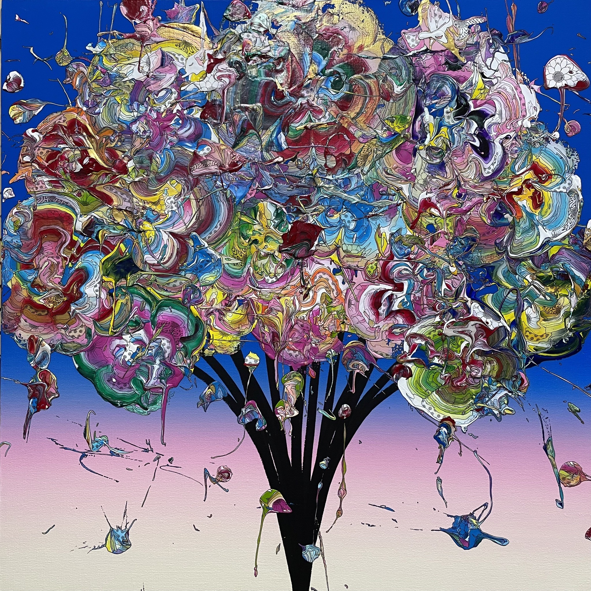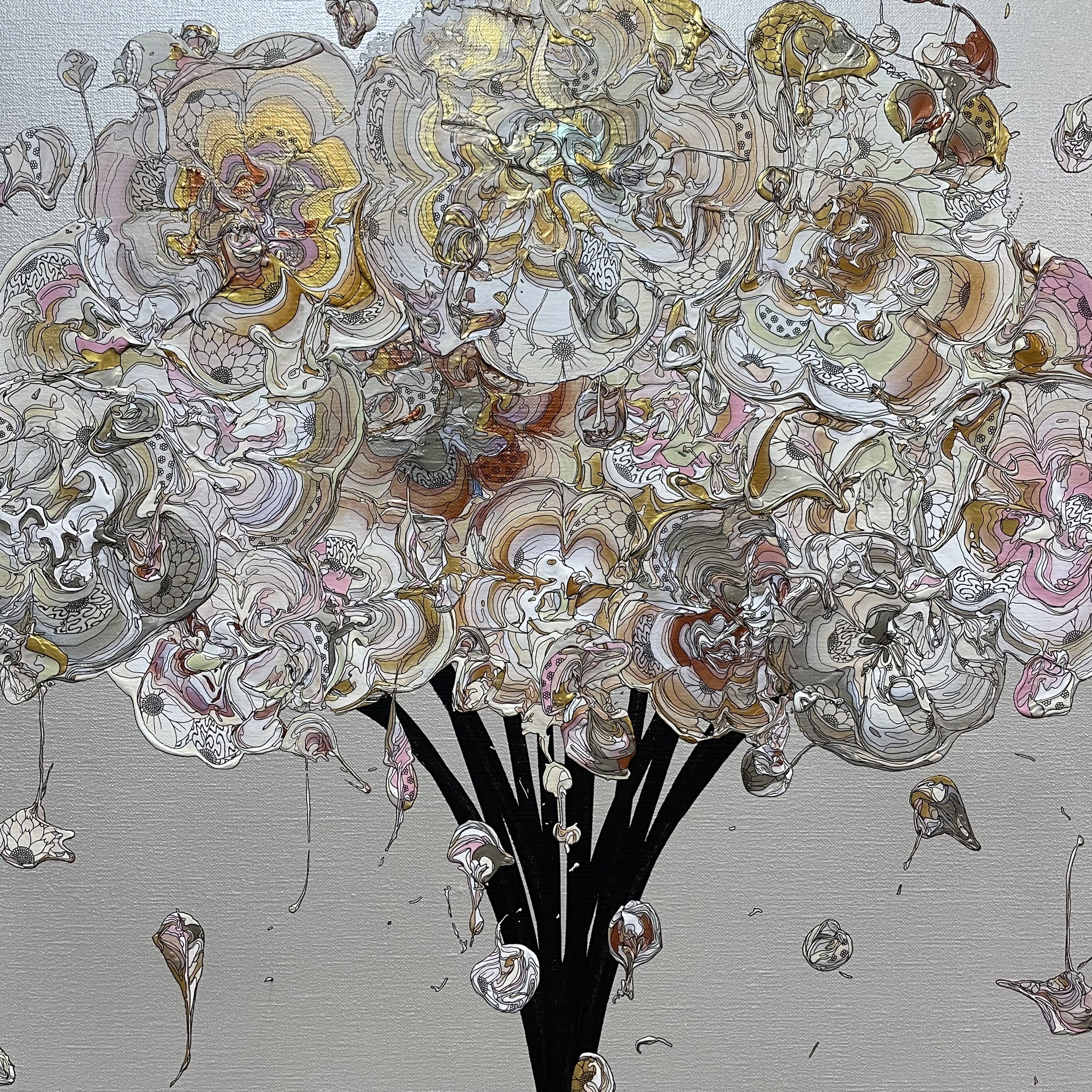 ファッションデザイナーから、アーティストへ転向し、国内外で活動する 現代アート作家 yutaokuda ( ユウタオクダ )氏の代表作「 with gratitude 」シリーズは、当たり前と感じてしまいがちな日常生活はかけがえのないものであり、その日常を支えてくれている大切な人達への感謝を伝えるために、花をモチーフとして描かれています。