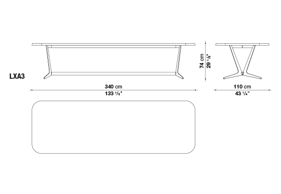 Astrum<アストラム>は、長方形、円形、楕円形のテーブルコレクションで、特別な"ソウホース"と呼ばれる作業台をモチーフにしたベースフレームが特徴です。グラファイトまたはアンバーの塗装が施されたダイキャストアルミニウム製の脚部で、2つまたは3つの脚がクロスバーで連結されています。