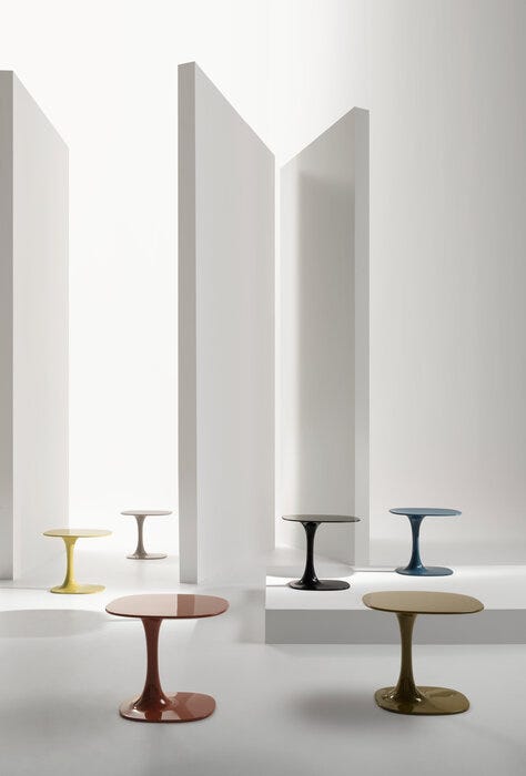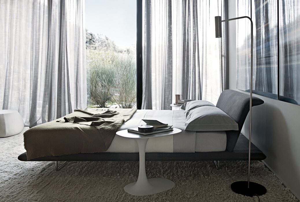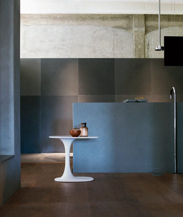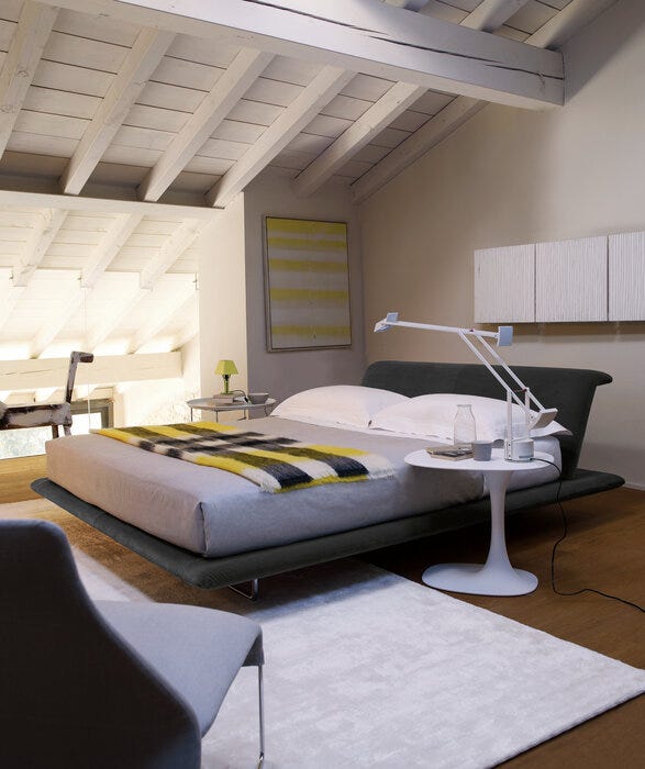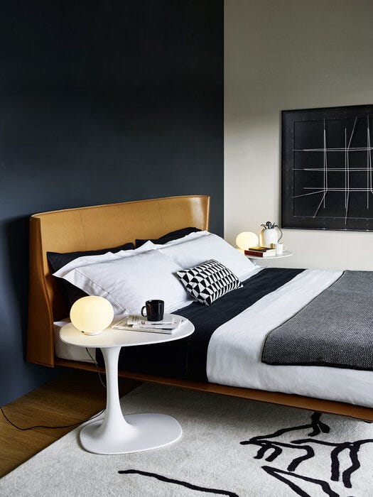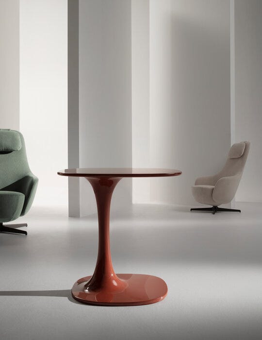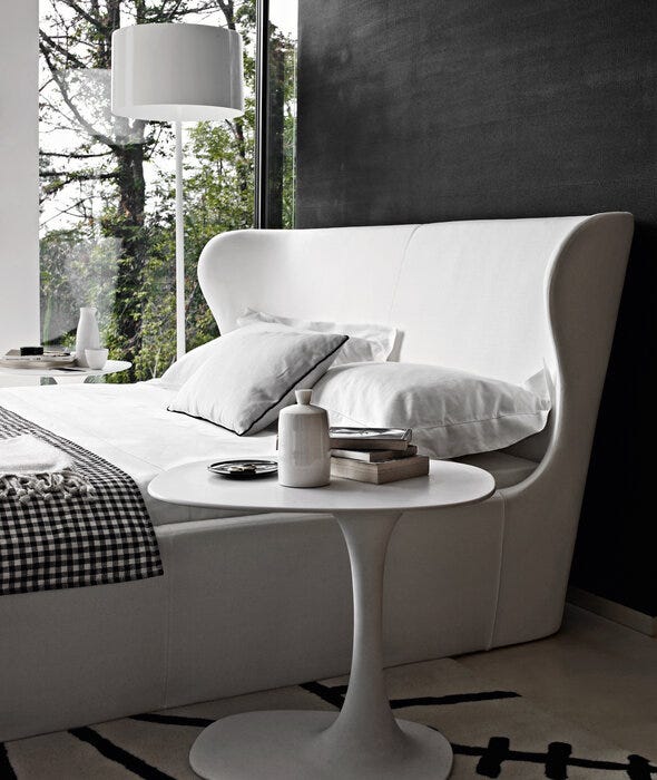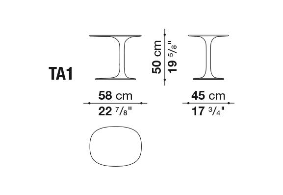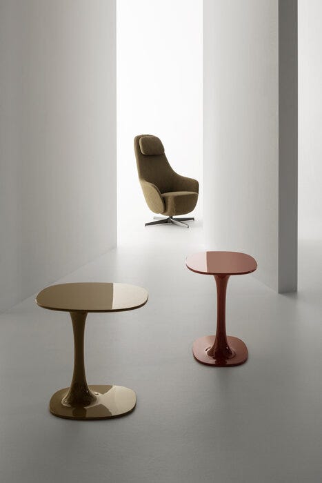 ソファやベッドの横に置くことを想定してデザインされた、エレガントなアシンメトリーのテーブル。
