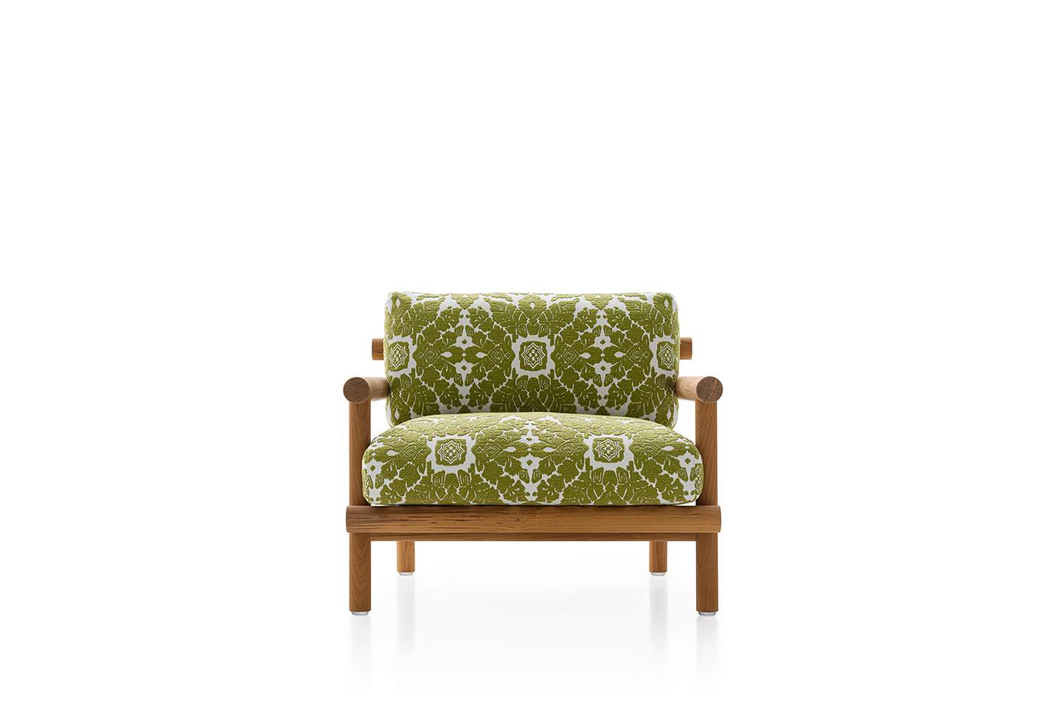 座面を2、3個持つソファとアームチェアには異なる高さのアームレストがあります。アームチェアのアームレストがより高くなっているのは、人間工学に基づいた寸法を確保するためです。低い方のソファのアームレストには取り外しが容易なクッションがあり、必要に合わせて快適に寝そべることもできます。このコレクションの際立った装飾はひとつひとつのクッションであり、全て防水性ファブリックでカバーリングされています。