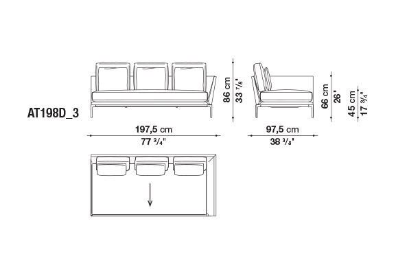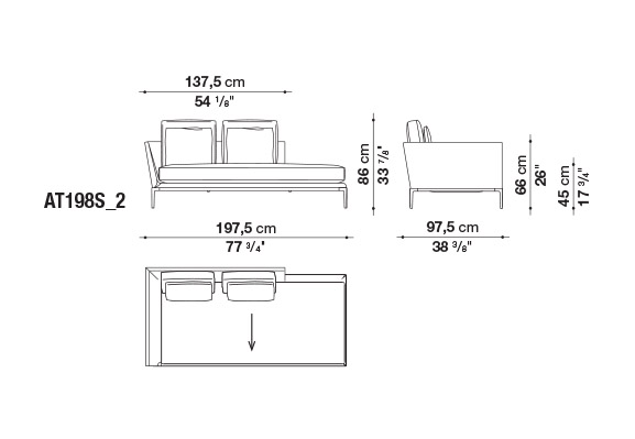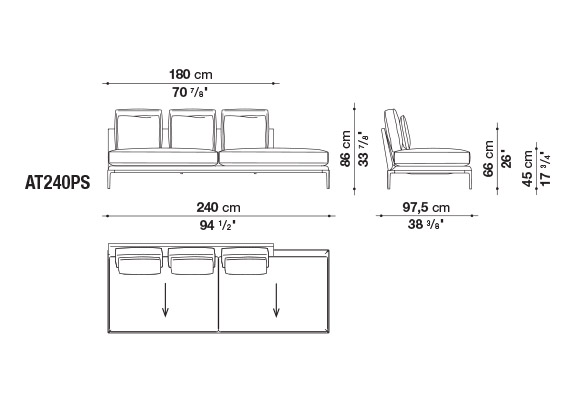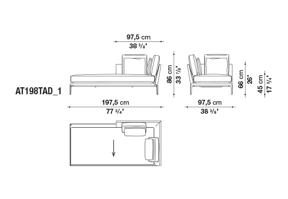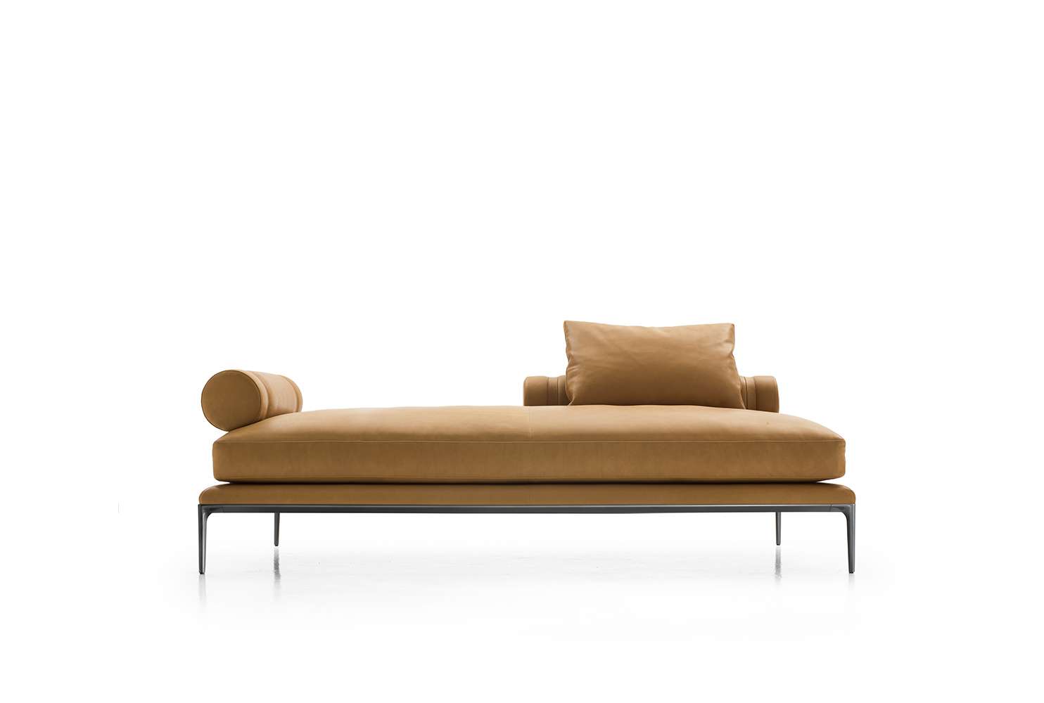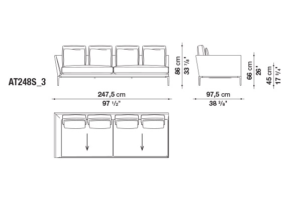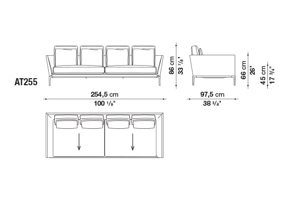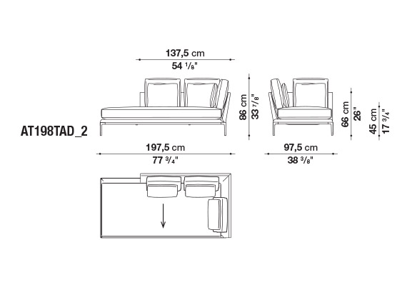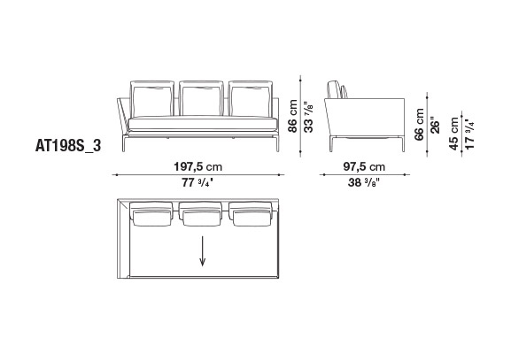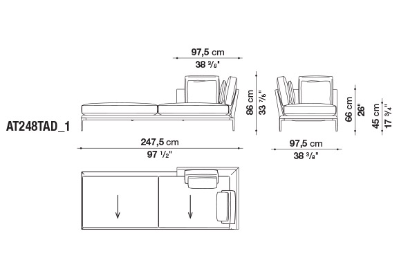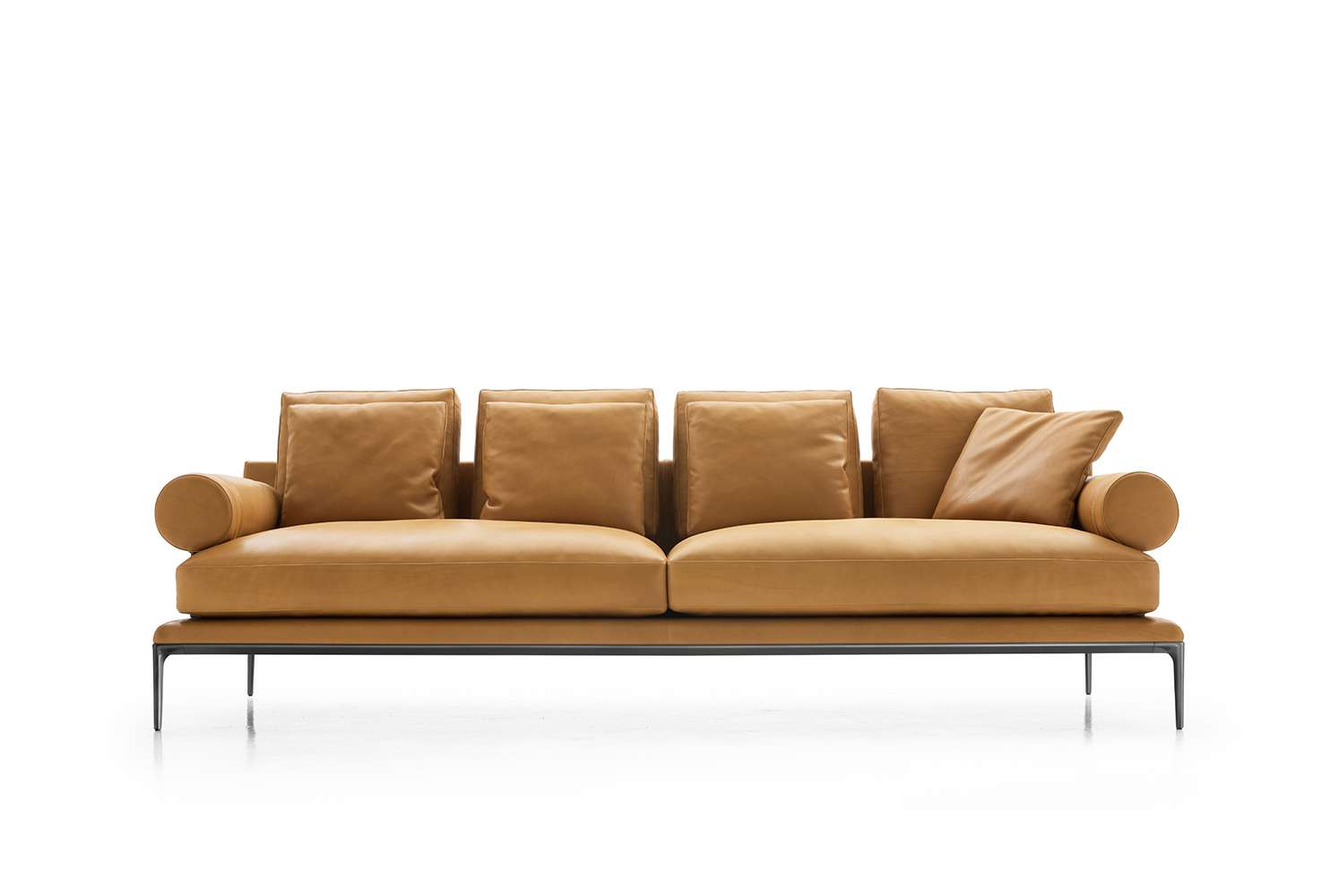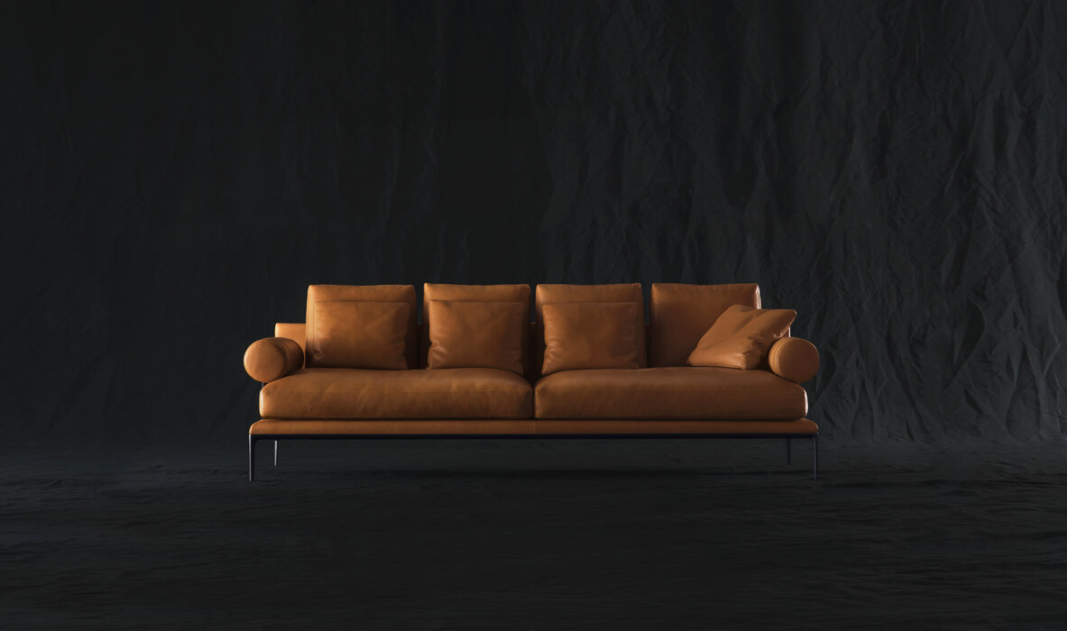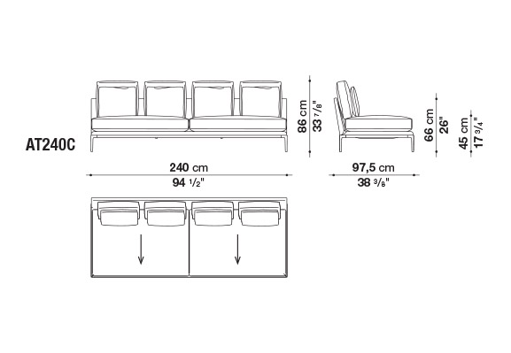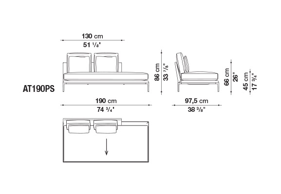 珊瑚礁から名前をつけられたB&B アトゥールは、アントニオ・チッテリオによるモデュラーシーティングの新しいシステムで、洗練された芸術的な形が最終的に現代的なスタイルで、しかも極めてエレガントにバランスよく表現されています。システムは、アームレストとバックレストを伴う190cm と240cmの幅にそれぞれ90cmの奥行、そして130cmの幅に140cmの奥行という3つの基本的なプラットフォームから構成されており、ソファとデイベッド、コーナーエンドモデュール、あるいは、シングル、シェーズロングやオットマンなど様々なバリエーションのシーティングスタイルが形成されます。床からやや高い位置にあるベースフレームは、スレンダーなラインの軽やかなダイキャストメタルで作られた構造で座面のマットとの境界をより強調しています。フレームのダイキャストメタルは、ピューターとブラッククロームの2種類の仕上から選択できます。サポートエレメントとしてより特徴的なのは、ダイキャストの構造フレームにレザーストラップ巻かれた円筒形のボルスターで、2種類(65cmと90cm)の奥行があります。このアクセサリーは、シートクッションとベースフレームの間、もしくはシートクッションの継ぎ目の間にセットして、アームレストや背もたれのように望んだ機能の使い方をすることができます。B&B アトゥールは、様々な組み合わせを創り出すことができるダイナミックなプロジェクトで、インフォーマルなリラックスした状況から最もフォーマルなバージョンまでのシーティングタイプをバッククッションなどのコンプリメントを使うことにより可能にします。
