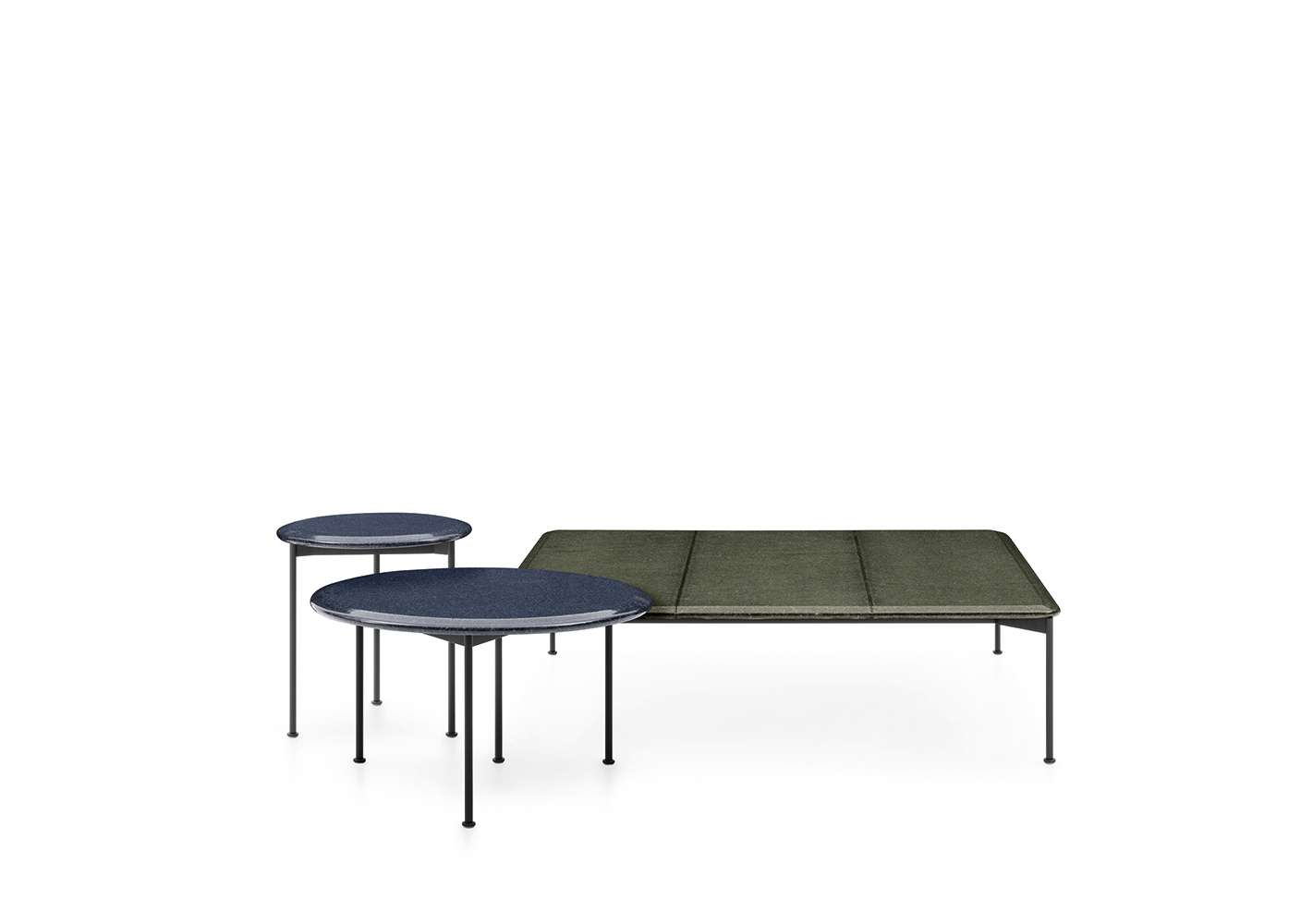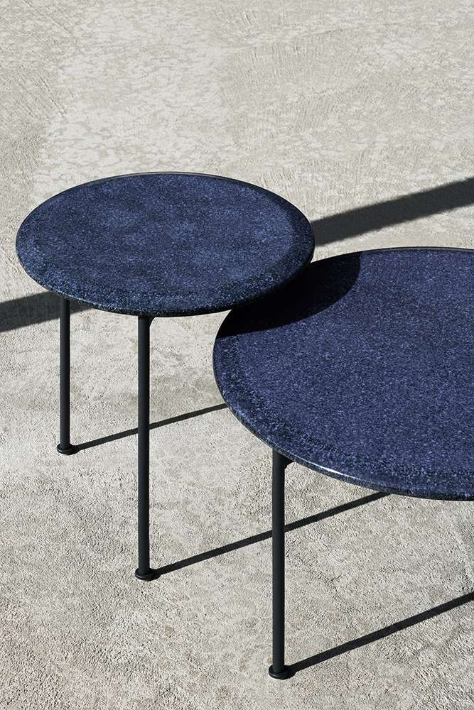 ソファとチェアに合わせてデザインされたローテーブルは、同じように天板に釉薬をかけた溶岩石のタイルを使用しています。スチールロッドに塗装を施した構造で、2つのサイズが用意されています。このコレクションは、さまざまな形、サイズ、素材で多様なサポートソリューションを提供するラウンドテーブルのシリーズによって、さらに充実したものになっています。Boreaコーヒーテーブルは、サイズと高さが異なり、構造体は塗装されたスチールロッド、天板は釉薬をかけた溶岩石でできています。