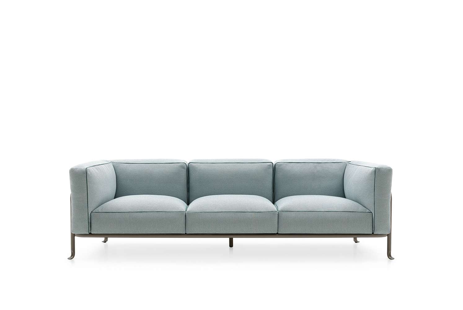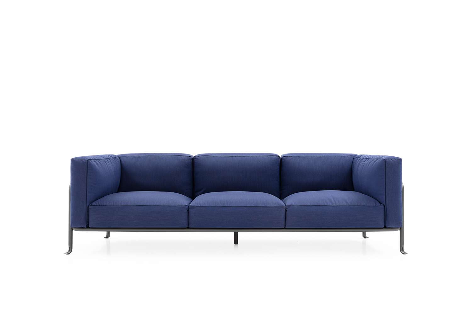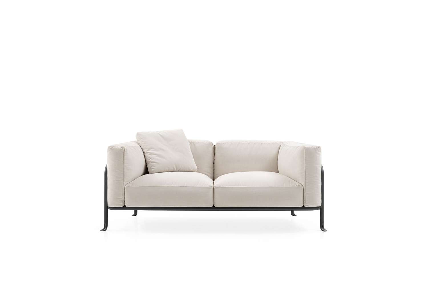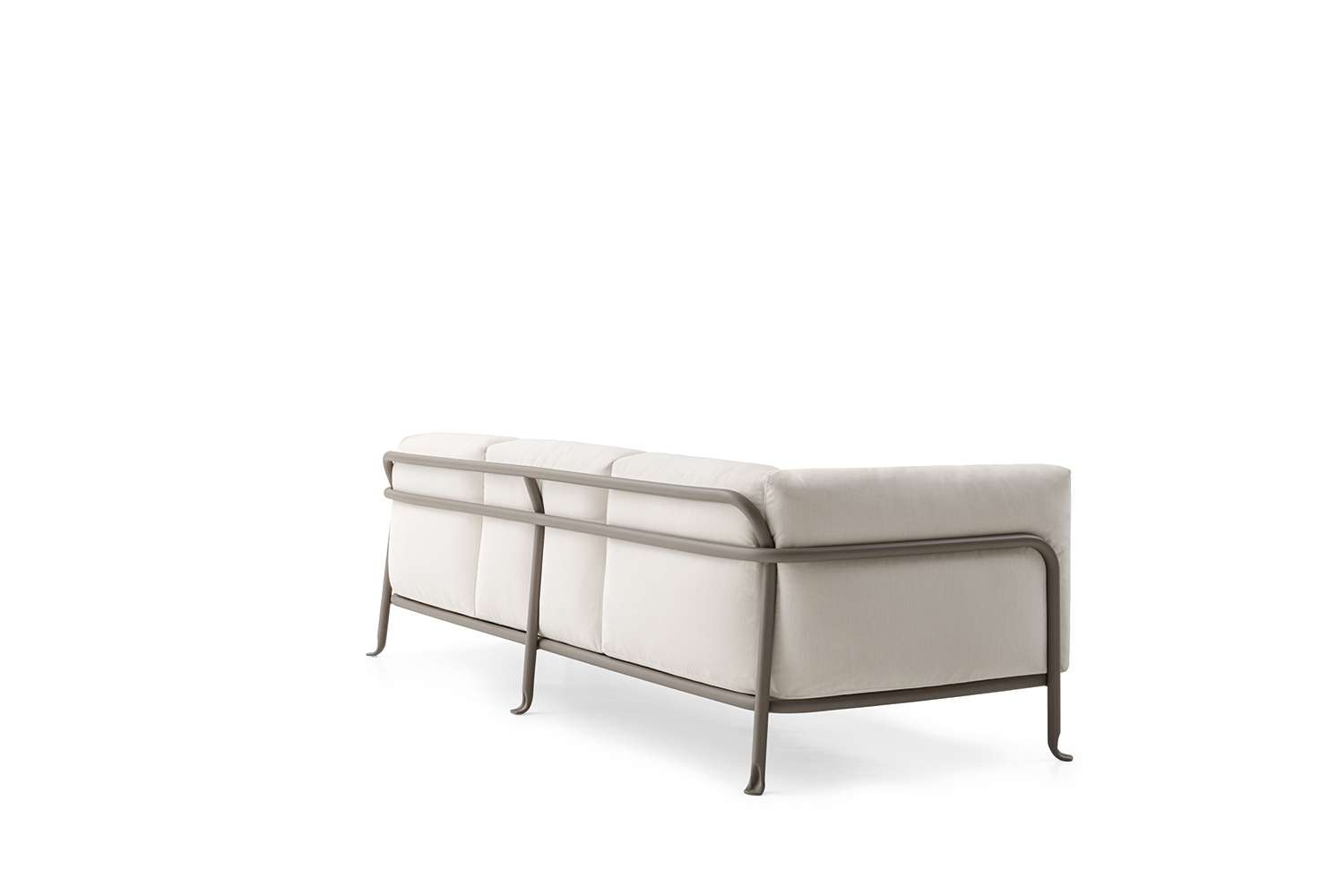 金属の曲げ加工は、航空業界でよく使われている技術を屋外用家具の世界に持ち込み、紛れもないスタイルのコレクションに命を吹き込んでいます。このコレクションには、2人掛けと3人掛けのソファ、オーバーサイズのアームチェア、低めのスモールアームチェア、ダイニングチェアがあり、いずれもスタッキング可能なアルミニウム構造に塗装が施されています。柔らかでリラックスできるだけでなく、持続可能性を考慮して開発された、たっぷりとしたクッションが快適さを約束します。