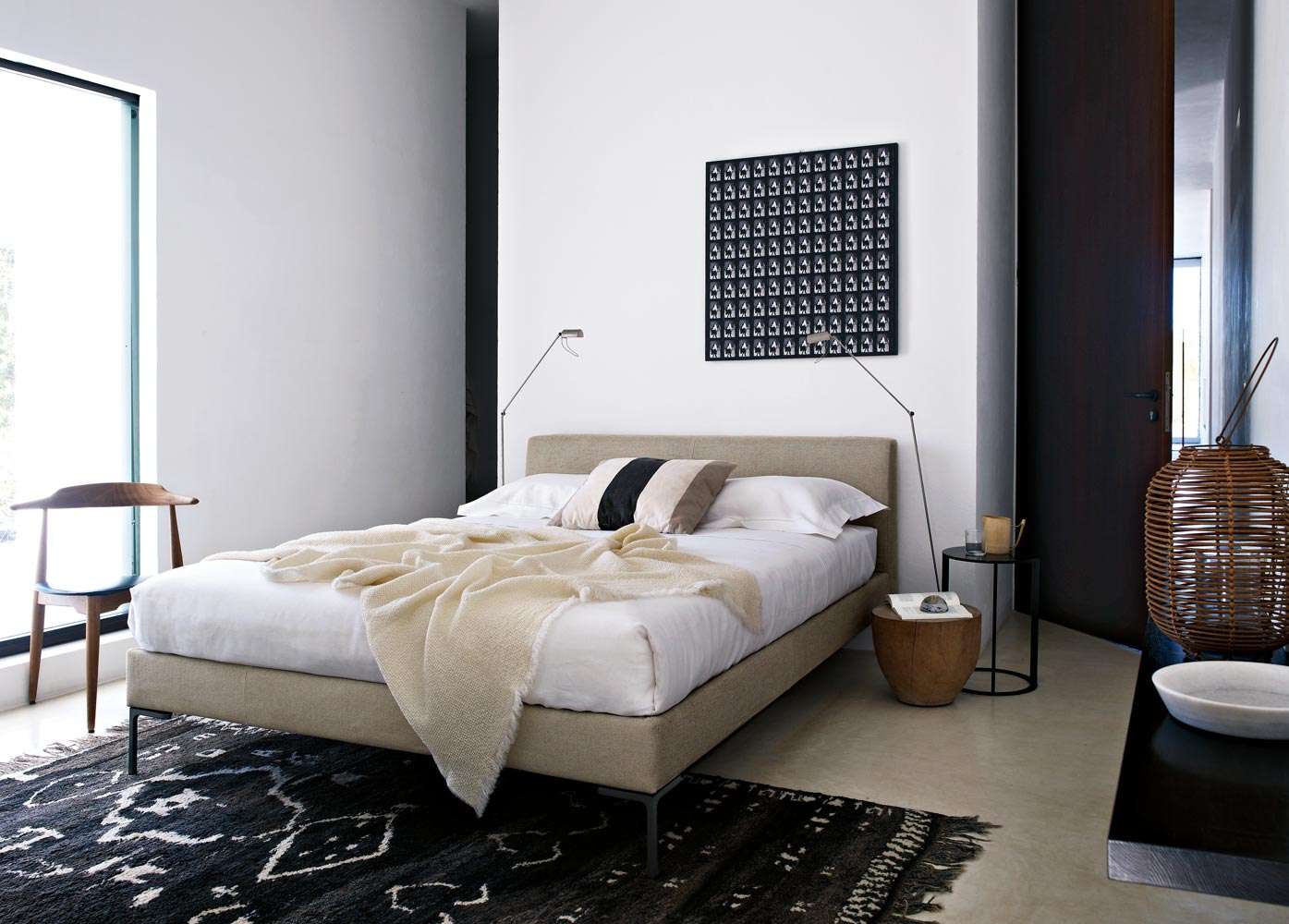 Charles<チャールズ>は、ファブリックまたはレザーを使用したベッドで、マットレスからサイドが少し出ている印象的なタイプと、バンドがマットレスと同じ位置にあるシンプルなタイプの2種類があります。同名のソファを進化させたCharlesベッドは、逆L字型の脚部が特徴的なデザインとなっています。また、キャスター付きのタイプもご用意しています。