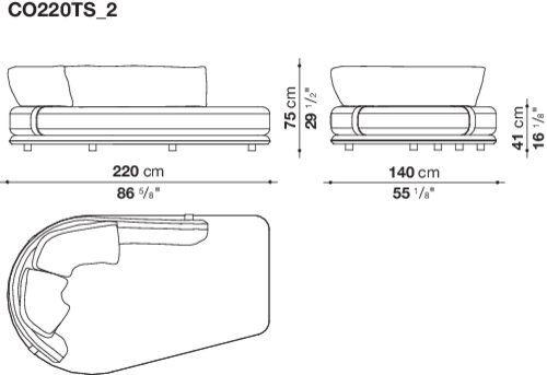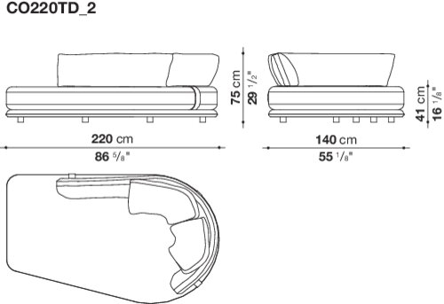 アルミニウム製のベースプロファイルが、その美しさと完成度をさらに高め、柔らかく、たっぷりとしたクッションが、包み込まれるような快適性をもたらします。