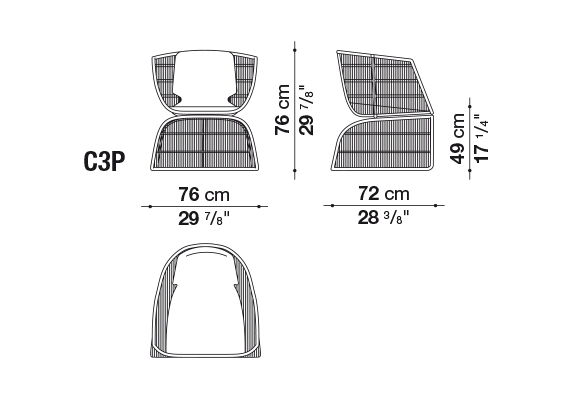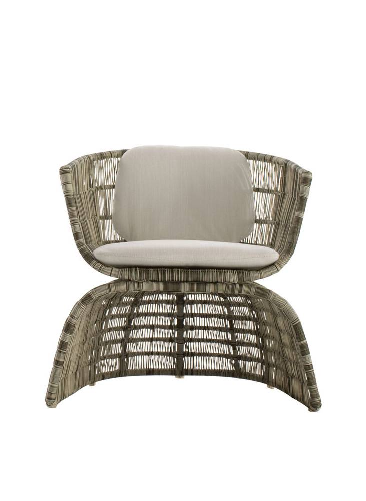 <Crinoline(クリノリン)>は、包み込むような女性らしいラインが特徴で、19世紀のロマンチックなスカートを連想させるシリーズの屋外用チェアです。チェア、スツール、スモールアームチェア、アームチェアなど形・高さの異なるデザインを展開しています。アウトドアだけでなくインドアにも合うデザインです。