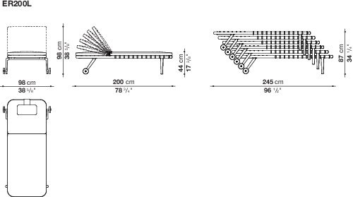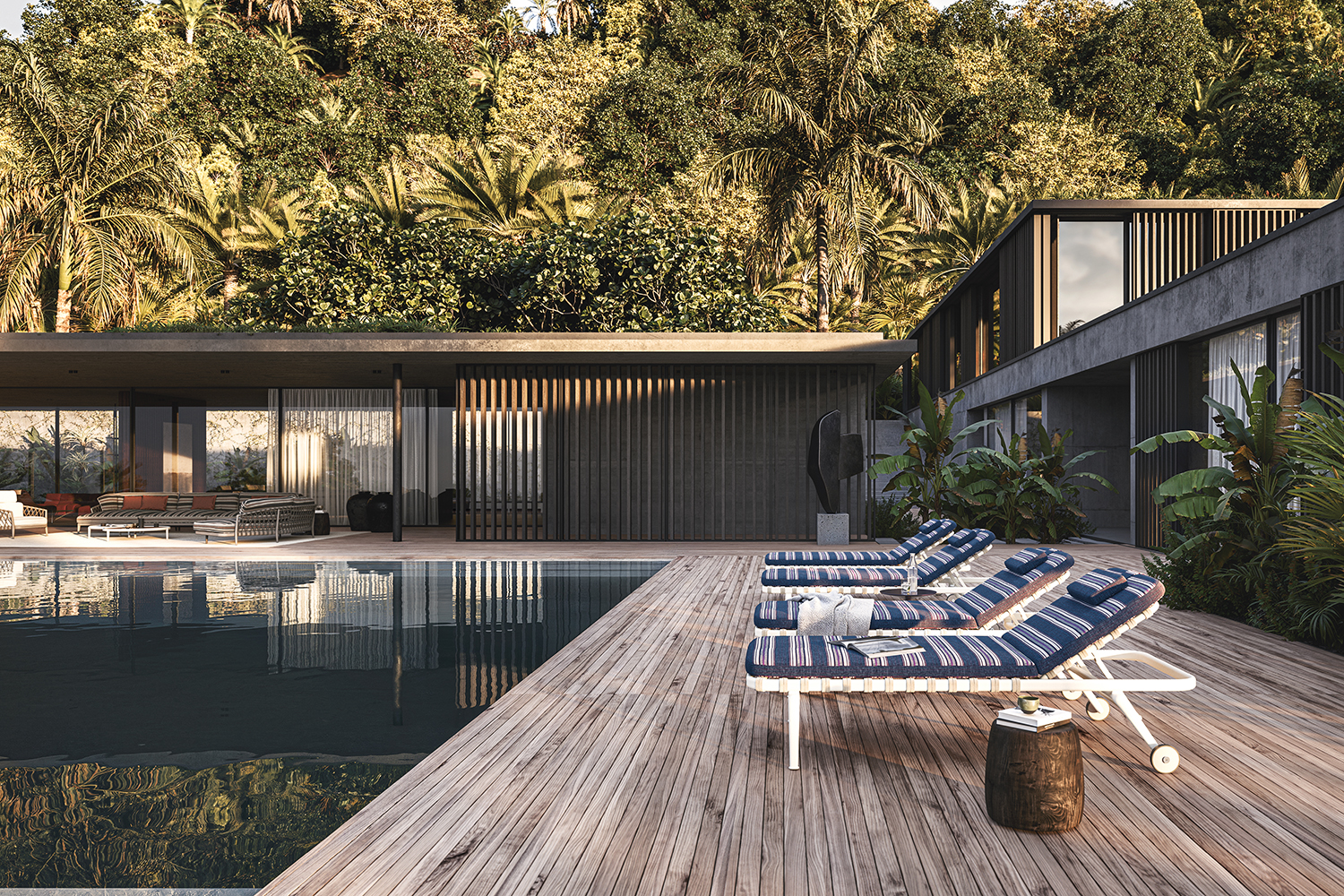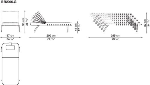 <Erica(エリカ)>のサンベッドは、エリカコレクションを特徴づける要素を継承しています。軽やかさと耐久性を兼ね備えたポリエステル粉体塗装仕上げのダイキャストアルミニウム製フレームに、高耐久コアを内蔵したポリプロピレン製ストラップの編み込みを組み合わせています。