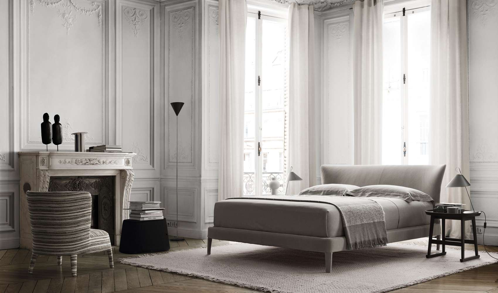ベッドバージョンのFebo<フェボ>は、6種類のサイズがあり、エレガントなヘッドボードと、2つのバッククッションの快適さが加わっています。単一素材にはっきりと見えるように加えたブランケットステッチという特徴は、このコレクションのあらゆる要素に共通しています。