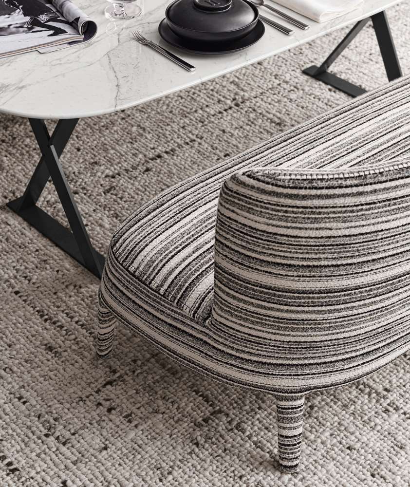 Febo<フェボ>シリーズは、様々な形のソファ・アームチェアがあります。アームレストのない、バックレストがシートを大きく包み込むようなトラディ ショナルなデザインが特徴的です。ソファーのサイズはワイドが2種類。小さいワイドのタイプはシートの高さが2種類からお選びいただけます。 (48cm/41cm, (大きいワイドは41cmのみ))。アームチェアは、バック部分が高い/低い、同じくバック部分が長い/短いタイプの4種類あり、どれもエレガ ントな印象です。Feboシリーズはブランケットステッチ(レザカバーは同系色のレイズドステッチもあり)が縁取られたデザインに、全体が同じファブリック/レザータイプ、脚部がブライトクローム/ブロンズニッケル、又はオーク(グレーオーク、ライトオーク、ブラックオーク)があります。