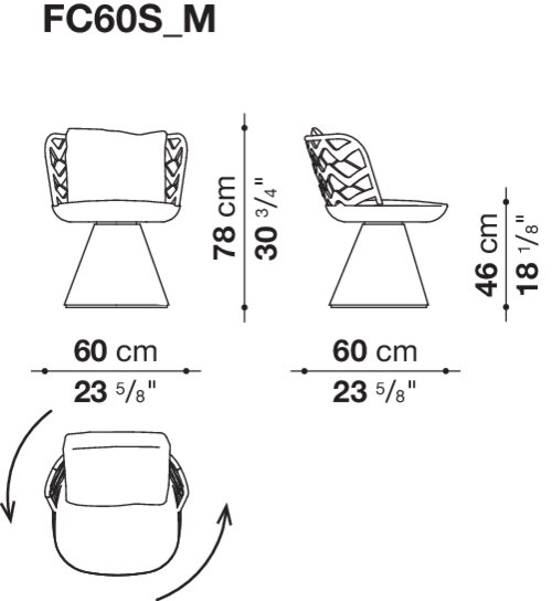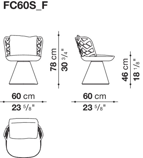モニカ・アルマーニは、屋内用と屋外用のエレガントなデザインのチェアシリーズ、<Flair O' (フレール オ)>の成功を受けて、<Flair O' Couture (フレール オ クチュール)>を提案しました。これまでのデザインに形としては似たこの新しいチェアですが、B&B Italiaが位置する地域に古くから伝わる織物の技法に基づき、特殊な円形の織機(トンボロ)を使って織られた背もたれが特徴です。