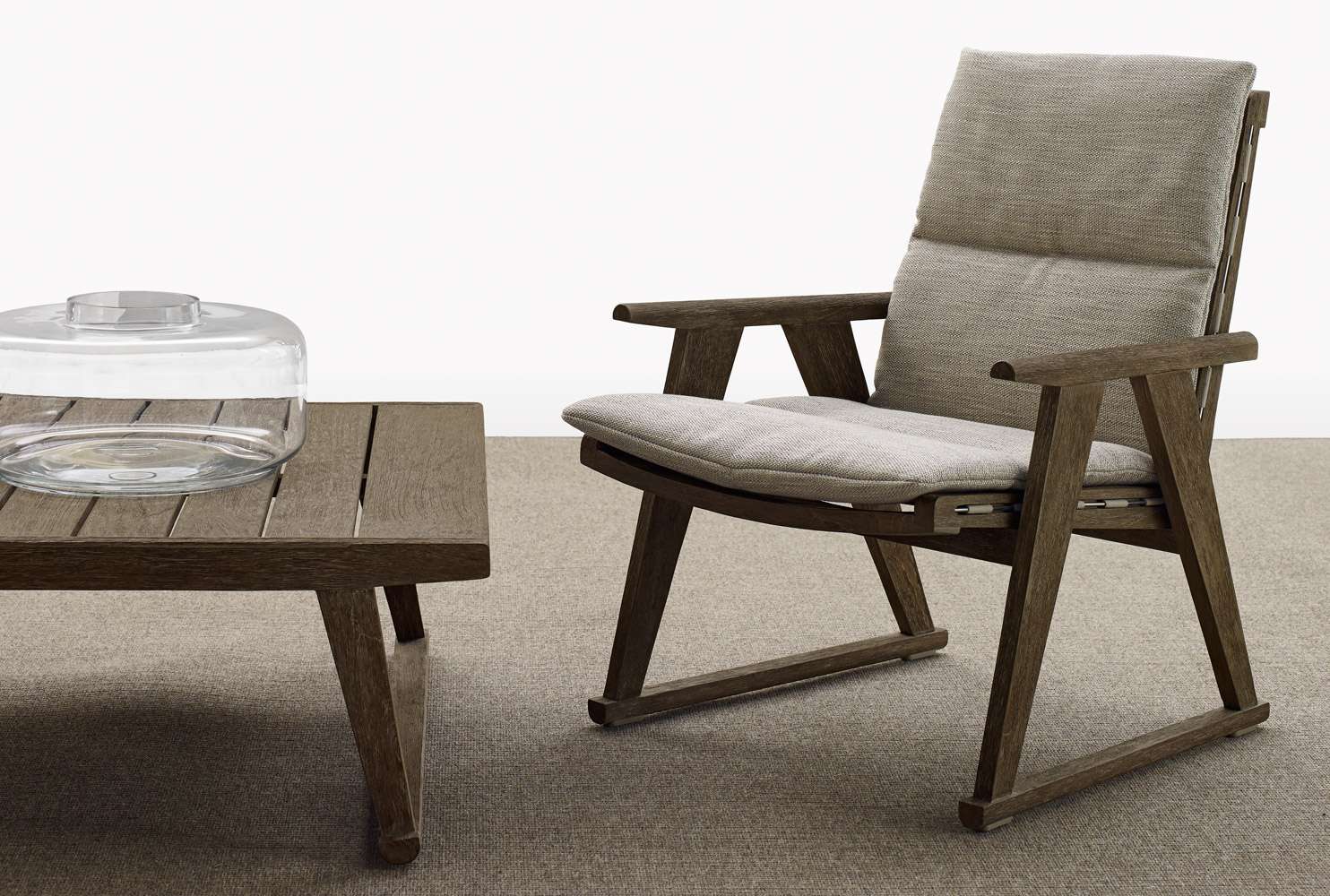 アントニオ・チッテリオがデザインしたGio<ジオ>は、屋外での生活に特化した、コンテンポラリー・クラシックなアクセントを持つシリーズです。ソファ、エンドユニット、シェーズロング、サンベッド、アームチェア、チェア、テーブル、コンプリメントの各シリーズは、チークの無垢材にアンティークグレーの特殊仕上げを施したもので、この仕上げは、木材独特の経年変化後のようなシルバーグレーの質感を与えます。