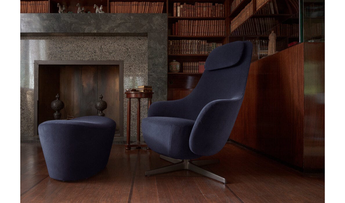 変化を求める気持ちと、住まいを見直す必要性が重なった時、深澤直人氏がデザインしたのは、リラックスの概念を再定義する多機能で革新的な〈HARBOR LAIDBACK (ハーバー レイドバック)〉です。〈HARBOR (ハーバー)〉の伝統を受け継ぎながら、フレームに隠された機構により回転しリクライニングが可能となりました。職場環境と家庭空間の両方に適応し、コンピューターやタブレットを使用したり、本を読みながら寛いだりするのに理想的な場所となります。