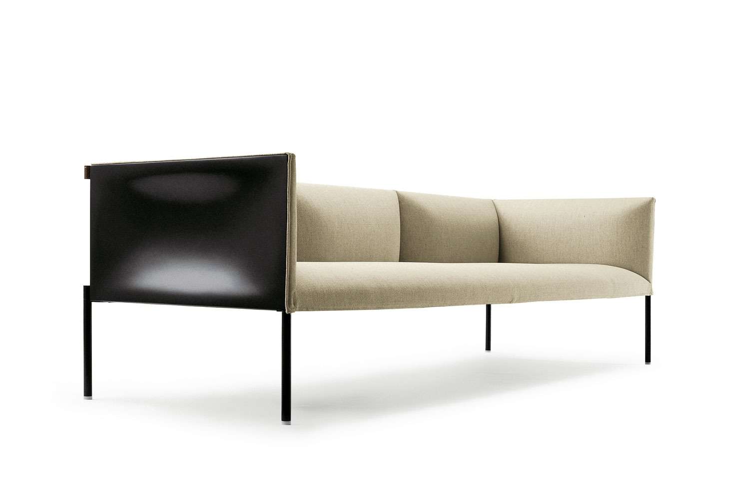 このプロジェクトは、さまざまなサイズのモジュール式パネルをヒンジで組み立てることで、背もたれやアームレストの役割を果たし、ソフトなシートを収納することができます。脚部で支えられ、全体的に張り合わされたパネルは、外側に凹んだプラスチックの表面を持ち、視覚的に要素を移動させ、軽さの効果を高めています。このシステムから生まれたタイプには、アームチェアと小さな2人掛けのソファが2種類のサイズで、小さな3人掛けのソファが2種類のサイズであります。