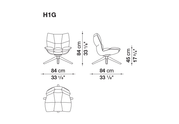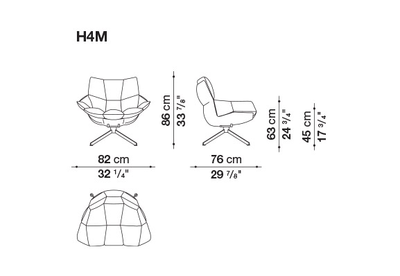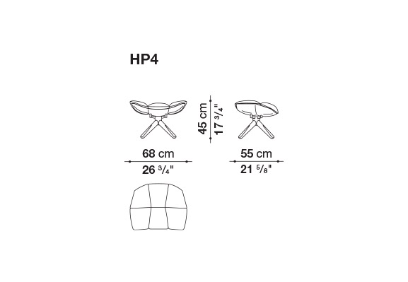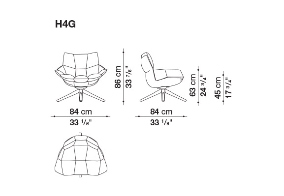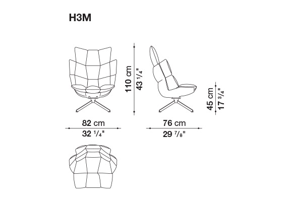 Hirek ®製の硬いボディに、分割された柔らかいクッションが入っており、人間工学に基づいた形状を強調しています。様々なスタイルと融合する独自の精神が込められています。