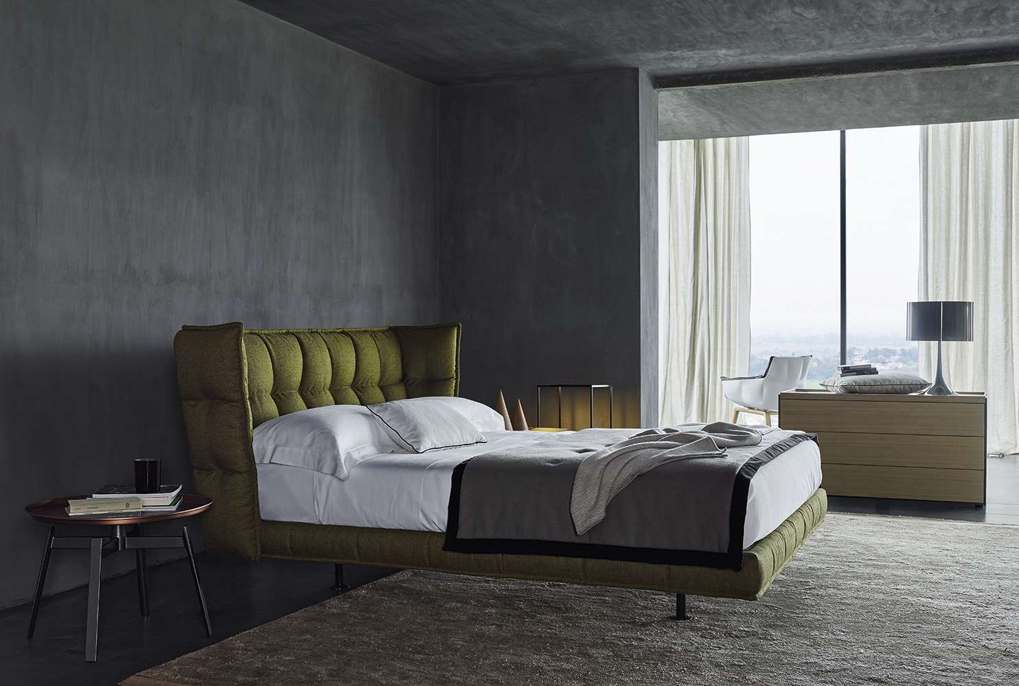 柔らかさと快適さの研究は、このシリーズの起源となった有名なHusk<ハスク>チェアを生み出したベースと同じです。柔らかさと幾何学性、シンプルさと複雑さ、そして何よりも居心地の良さと快適性。強い個性を持つヘッドボードは、シングルサイズで、ステッチの視覚効果を活かし、マットレスを収納します。