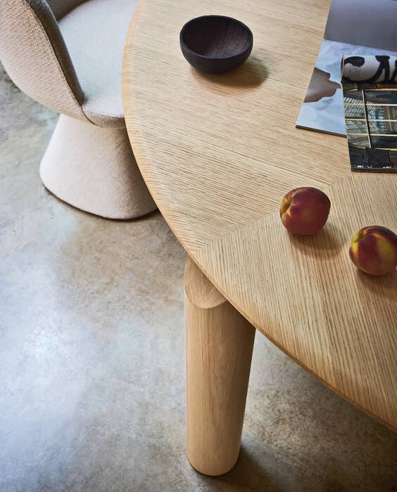 「Isosテーブルの脚は、35度の角度でカットされています。まるで鉛筆のように、脚の先端を天板が乗る部分に向けて削り、その衝撃を和らげると同時に、静的で建築的な美しさを際立たせました。
