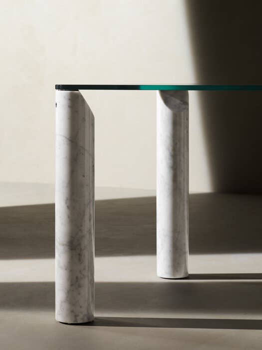 このテーブルは、ガラス、木材、大理石の脚など、さまざまな素材で作ることができます。しかし、興味深いのは、この鉛筆のような柱と天板の間に生まれる張力です」ー ピエロ・リッソーニ