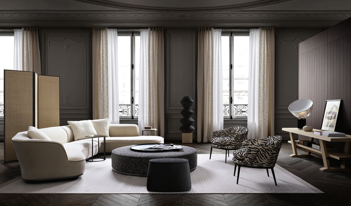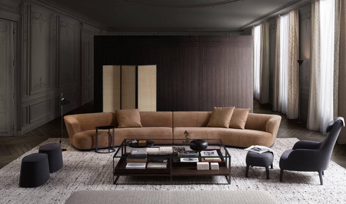 第二次世界大戦後に現れた、しなやかで有機的なラインが特徴的な<Lilum (リルム)>は、同席の人達と陽気に親しみやすくできるよう特別にデザインされたソファです。しかし、フォーマルなソファと同じ空間に置くこともできます。