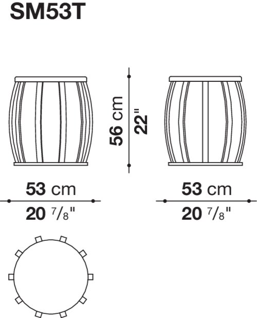無垢材の板に曲がりをつけ外周のフレームとして施すことで、丸い形状を軽やかに表現しています。仕上げは、グレイオーク、つや消しのライトオーク、つや消しのブラックオーク、ブラック、レッド、ソイアのシェラック塗装となります。オリジナルタイプと多目的に使える付属タイプを2つのサイズで用意しています。