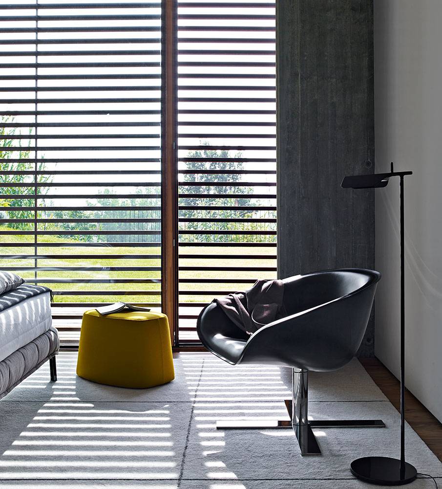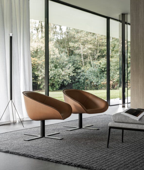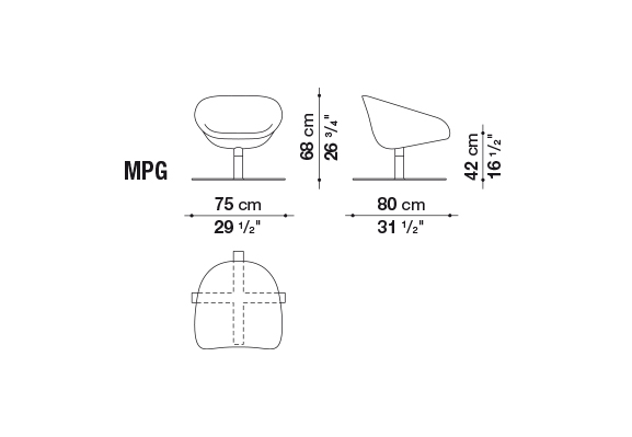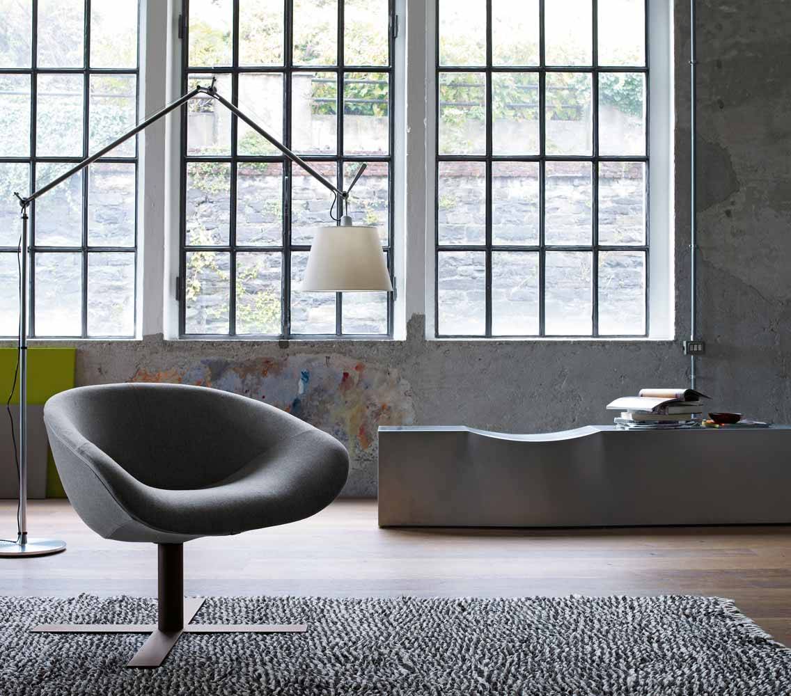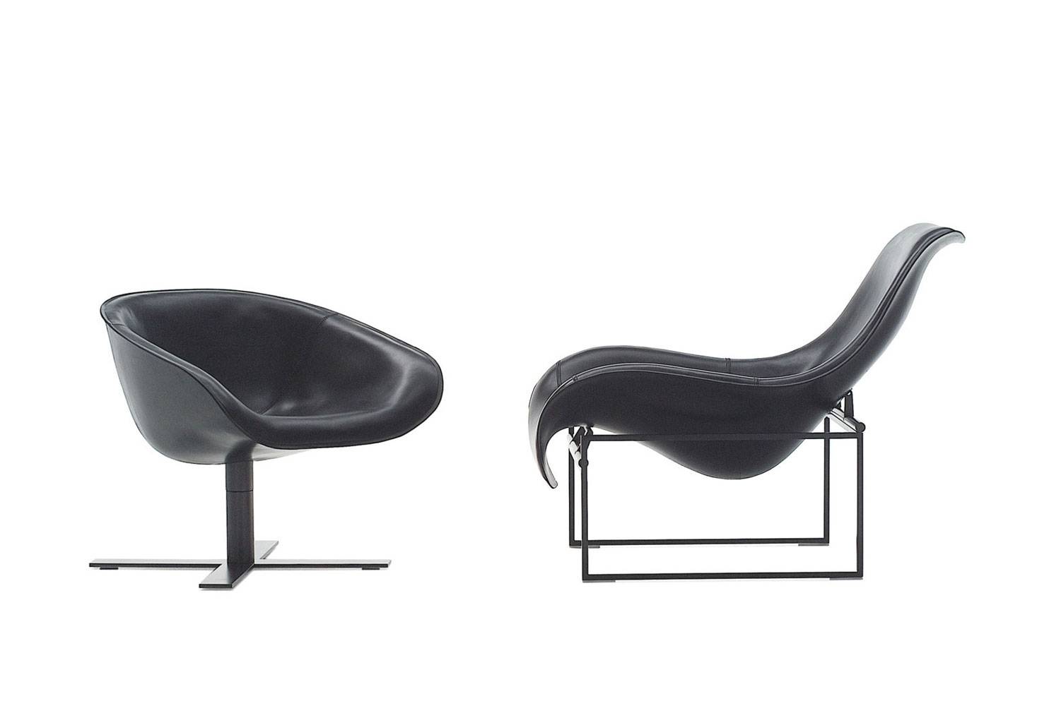 多くの研究を経て開発されたMartには、厚手のレザーを熱成形する技術が駆使されています。サイズはスモールタイプと、スウィーベル機能付きのクロス ベースが付いたラージタイプの2種類をご用意しております。3種類のベースフレームがあり、クロームメッキ仕上げ、ブラックスチール、ブロンズニッケル 塗装からお好きなものをお選びいただけます。また、背もたれ手動で簡単に2段階リクライニングできます。マートシリーズはフォルムや素材の組み合わせ を変えることにより、豊富なパターンをお楽しみいただけます。厚手のレザーを使用したスウィーベル・アームチェアに使用されるクロスベースフレームに は、クロームメッキ仕上げ、ブラッククローム仕上げ、またはブロンズニッケル塗装が施されております。ファブリック地のアームチェアには同じ十字状の ベースフレームが使われていますが、色はプラム、マスタードイエロ-、ブラックなど明るい色が加わっています。スモールタイプはレザーとファブリック から選択可能で、スモークドオークのスポーク4本が付いた回転式のベースフレームを使用しています。