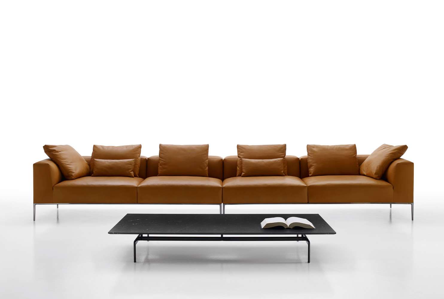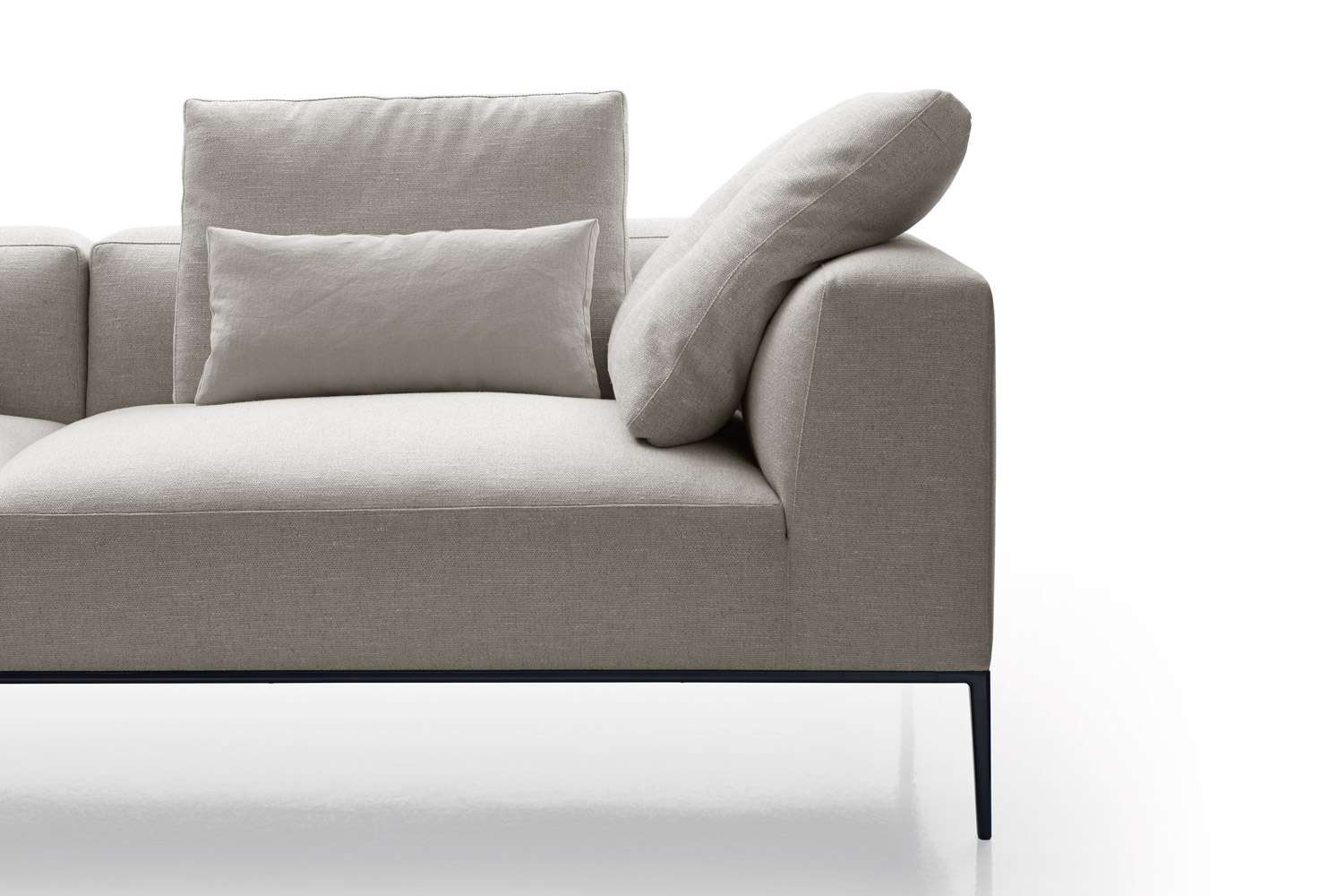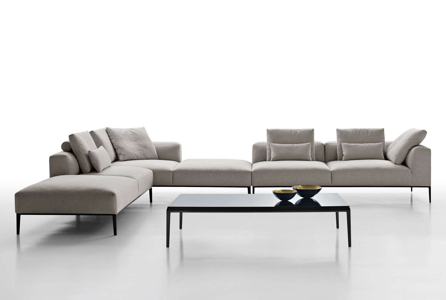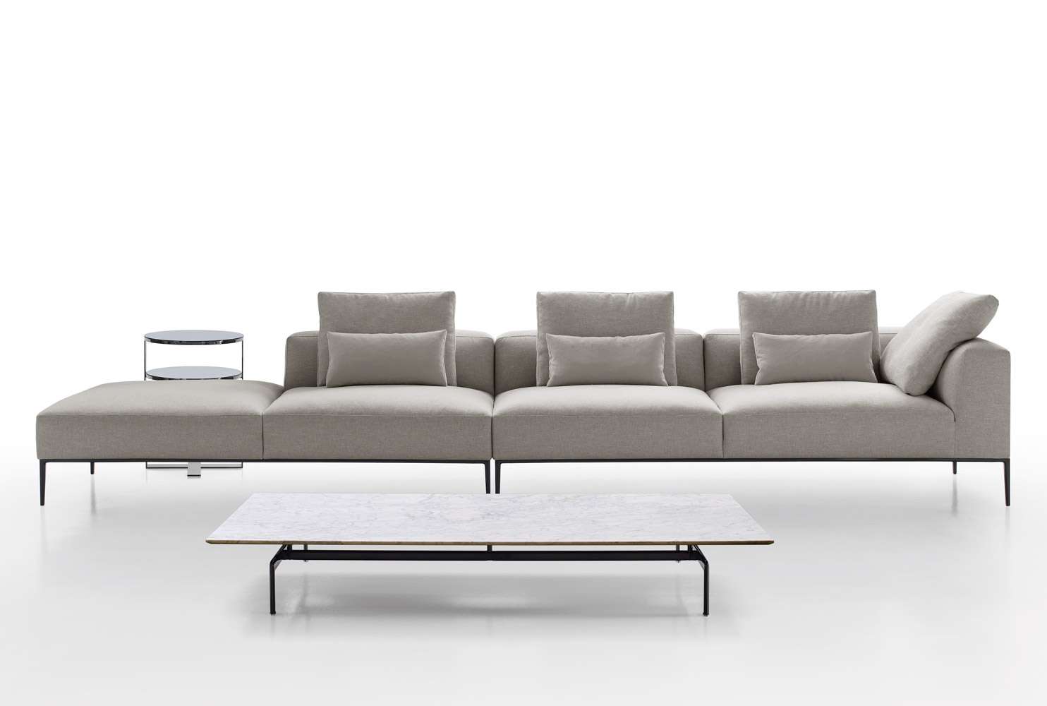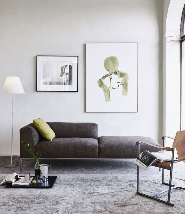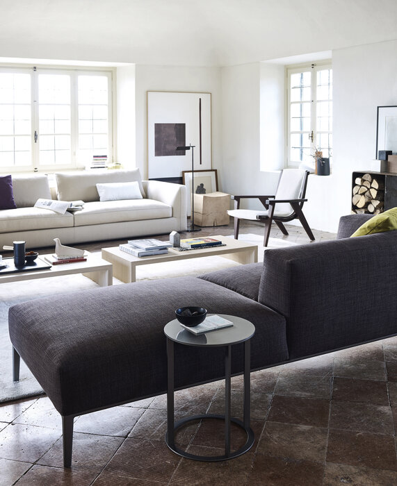 ミシェルがエレガントに進化し、ミシェル・エフェになりました。シートクッションとベースフレームのサイズを変更することで、ミシェル・クラブのクラシカルな装いもふんだんに取り入れています。バリエーションの幅が広がり、フォーマルな場からソーシャルな場まで、さまざまなタイプと機能を生み出すことができます。多くのエレメントを共有している3つのシーティングシステムによって、リビングルームのスペースを非常にフレキシブルに解釈できます。34種の直線的なモジュラー要素と5種のオットマンを揃えており、すべて2種類(89cmと104cm)の奥行と、明るいつや消し、ブロンズニッケル塗装、ブラッククローム塗装、またはピューター塗装で仕上げたベースフレームからお選びいただけます。