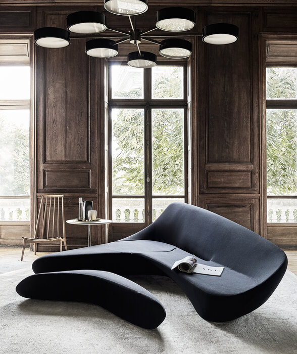 トラディショナルなソファのアイディアを根底から覆し、斬新かつ極めてダイナミックなフォルムを持つ、ブロックのような一体型のソファが誕生しまし た。1つの物体から「掘り出された」ようなシートとアームレスト。宇宙からの漂着物のようなメタリックな光沢。ムーン・システムは、お部屋の中心に置 いたとき、その魅力を遺憾なく発揮し、見る角度によって流れるようなカーブが変化するような感覚を覚えます。本体のフォルムと一体になる、オットマン も取りそろえております。