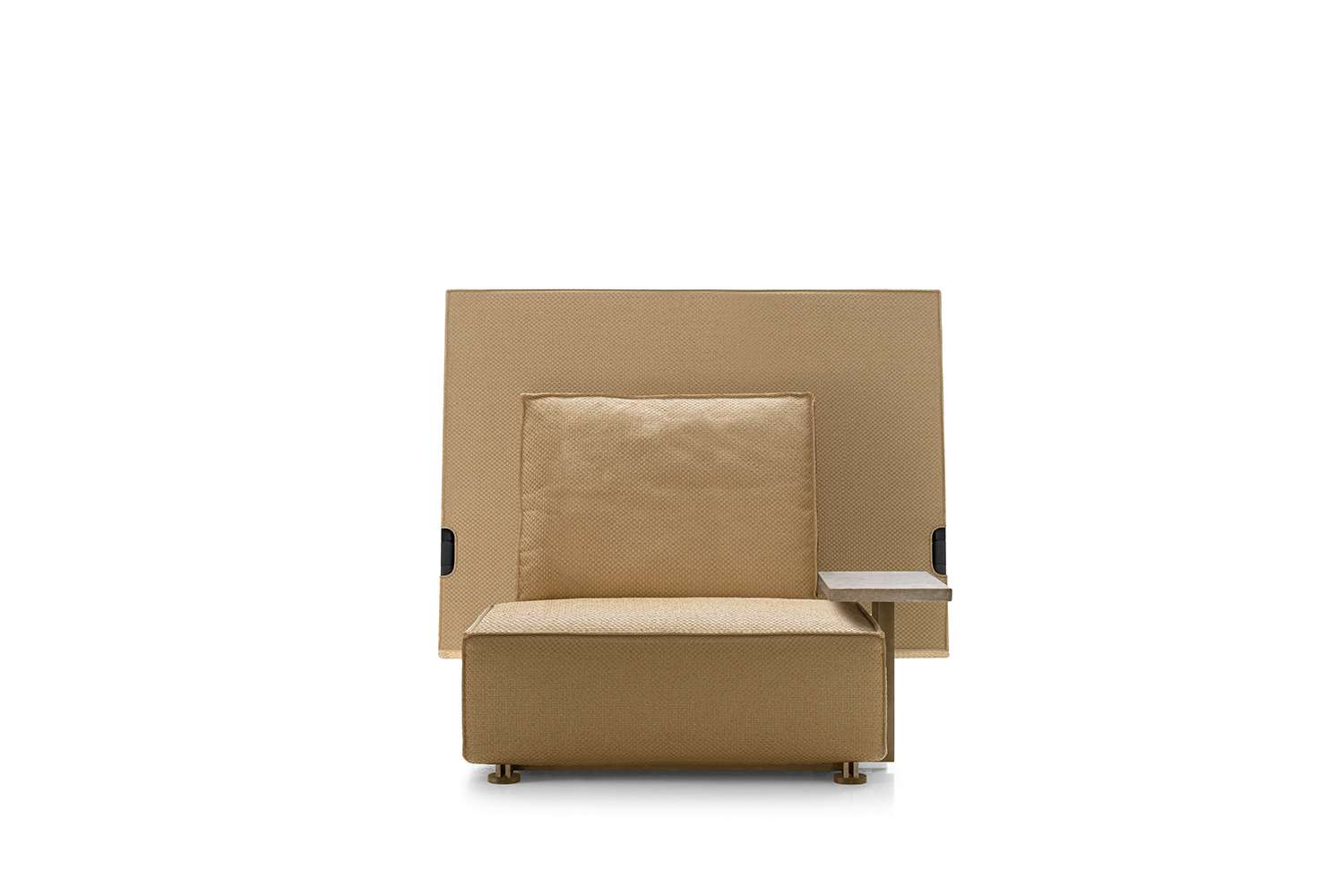 注意を引くネーミングで、B&B Italiaとフィリップ・スタルクの初のコラボレーション作品が誕生しました。奇抜なフォルムと想像もつかない機能の組み合わせを持ったソファとアームチェアの創作です。 Oh, it rains!<オー イット レインズ>は、今後時を経ても変わらぬ存在感を示し話題となり続けること、さらに全く想像もつかないような方法や状況で使われることを運命づけられた、強烈な印象を与える作品です。 フィリップ・スタルクはこのプロジェクトのリサーチを、かつての放浪者や遊牧民、軍人が使っていたようなタイプのアウトドア製品にまでその起源を遡りました。つまり砂漠のテントやフィールド活動をするための装備、コロニアルな色使いや超軽量な素材、素早い動きに連動できる形状と機能などです。 Oh, it rains! はまるで壁やパーティションのように見える大きなバックパネルに真っ先に目が行きます。しかし、それは単なる装飾的なエレメントではありません。バックレストは座面トップに折り重なり、座面とクッションを完全に覆い、保護することができます。 バックパネルも生地を何にするかで個性を出せるエレメントとして機能します。快適性とダイナミックなルックスを持ったクッション選びによってさらなる魅力が加わり、プライベートなセッティングはもちろん、ホテルやラウンジのアウトドアエリアにも最適です。技術的な見地からは、バックレストは撥水性のあるファブリックの二層構造で作られ完全な防水性を実現しているため、Oh, it rains! はB&B Italiaのどのタイプのアウトドア用ファブリックでも使用できるようになっています。また、本体にはメディテレーニアンストーンのサイドテーブルを接合することも可能です。