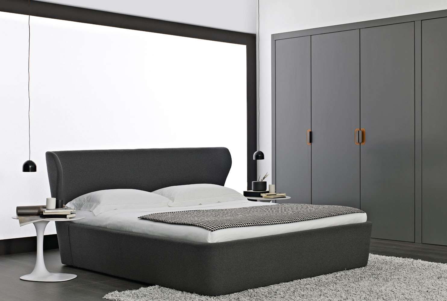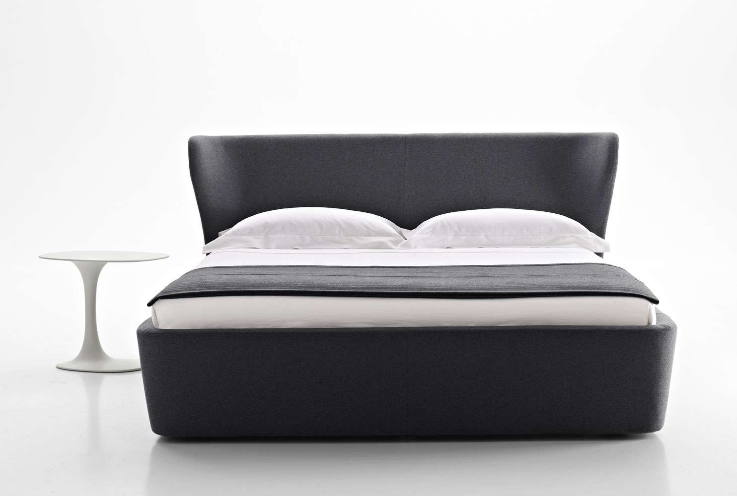 緻密なプロポーションを持つ連続した単一素材の形状。Papilio<パピリオ>アームチェアのように、美学は見事に解決されています。アームチェアに比べて円錐形の形状はわずかに縮小されていますが、サイドのデザインに取り込まれています。マットレスは外周とほぼ同じ高さに配置され、全体の剛性を高めています。
