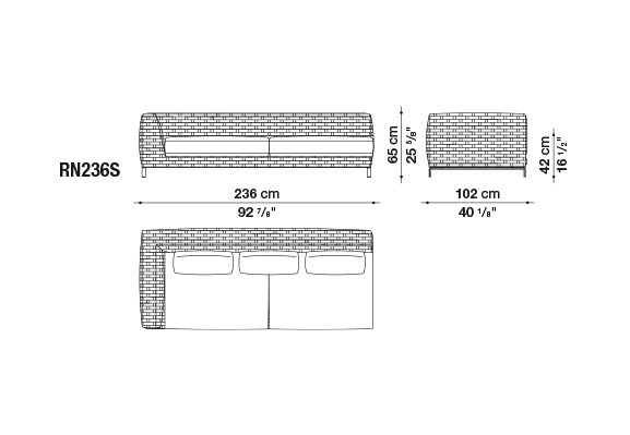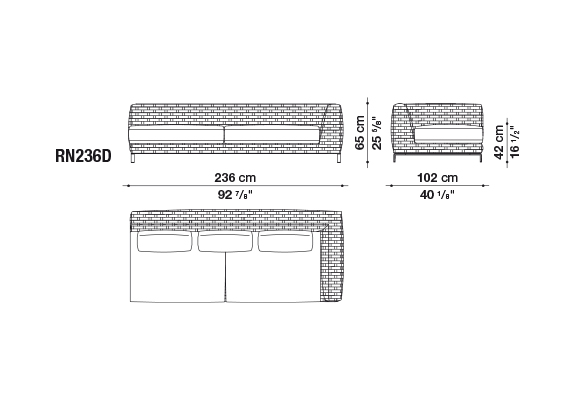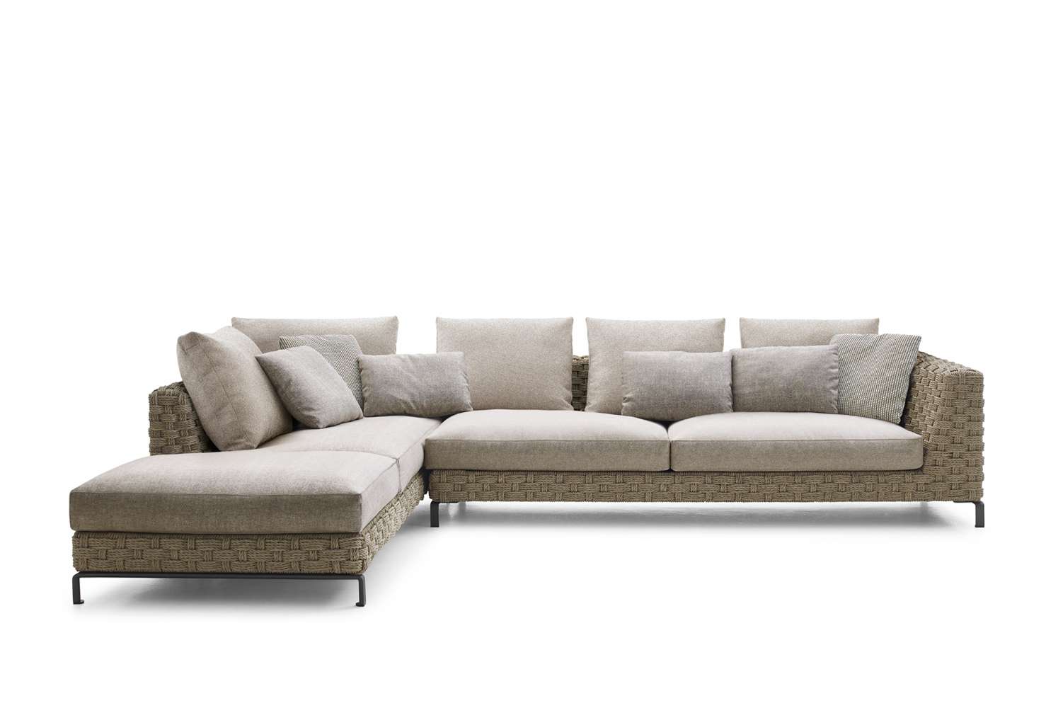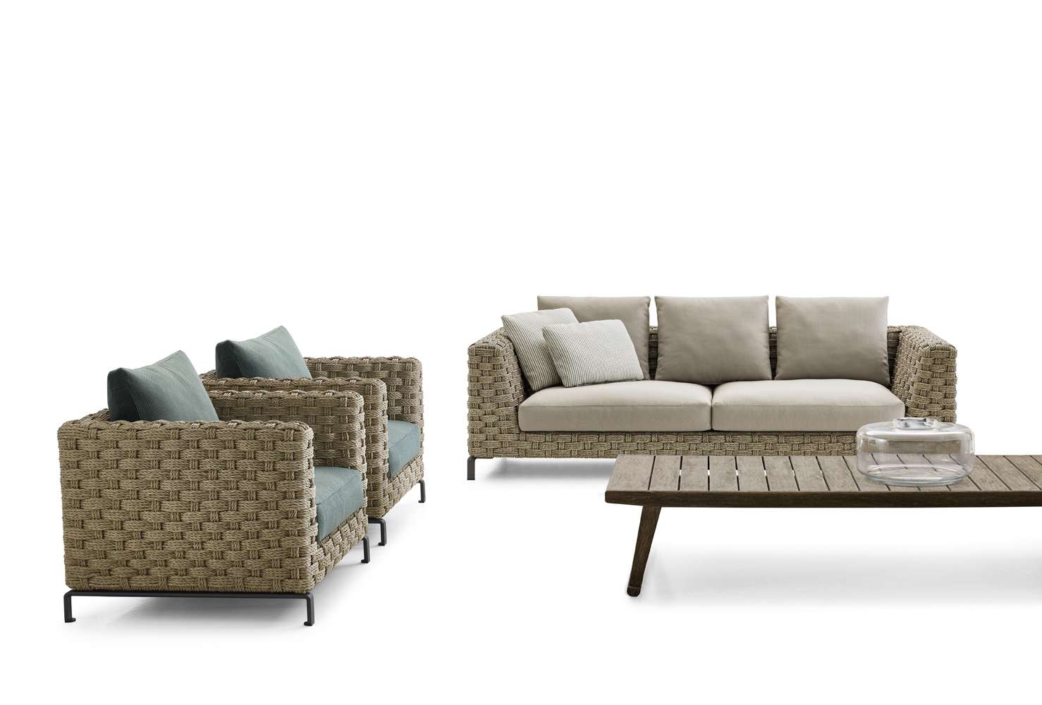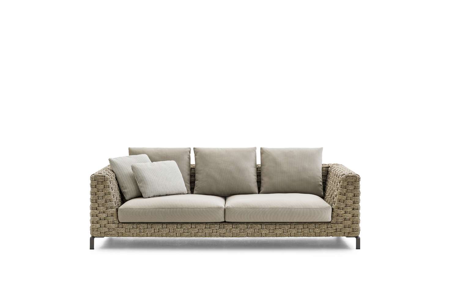 インドアコレクションとしての名声を得た後、アントニオ・チッテリオはRAYシーティングシステムに二つの新しいアウトドアコレクション“ナチュラル"と"ファブリック”を採用しました。両コレクション共に軽量な押し出しアルミニウムフレームを使っていますが、違った素材で編み込みを施している所は異なります。ナチュラルコレクションはマニラ麻を原材料にしたマニラヘンプから発想を得たロープ織りが特徴的であり、アウトドア用の特別な生地を合せることにより完璧に自然と一体化するようにデザインされています。“ナチュラル"と"ファブリック”の両コレクションには二種類の奥行きを持つソファがあり、ラウンジチェアやシェーズロング等のモジュラーエレメントが用意されています。