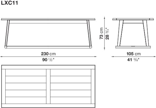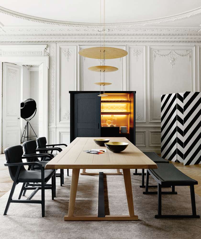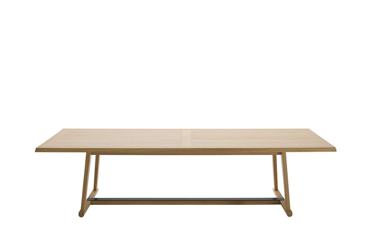 クラシックな食卓を現代風にアレンジした、長方形の木製ダイニングテーブルRecipio '14<レシピオ'14>。天板にはすのこ状のモチーフが施されており、底面のクロスピースには、美観と保護機能を兼ね備えたスチール製のプロファイルが取り付けられています。Recipioシリーズには、スモールテーブル、コンソール、ライティングデスクなどもあります。