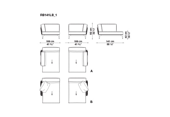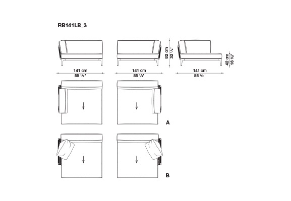 プロファイルの色の選択は、ナチュラル、ブルーとレッドの色調もあります。汎用性が高いため、新しい要素を追加したり、既存の要素の機能を変更したりすることが可能で、時間が経過した後にRibesを追加して再構成することもできます。バックレストやアームレストの位置を入れ替えたり、追加したりして変化させることで、ソミエは対面式にも、アイランドにもなり、コーナーシーティングの場合は快適なベッドに変わります。
