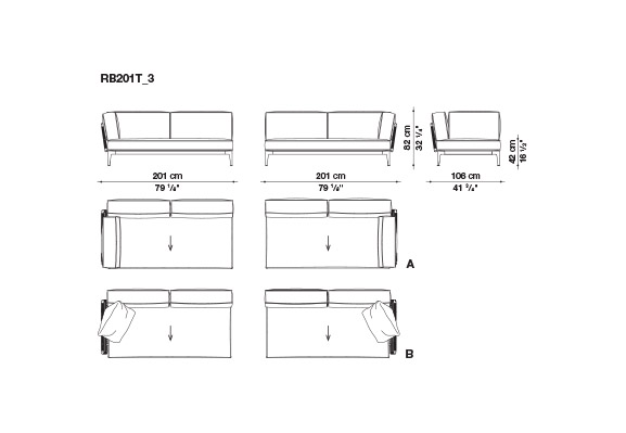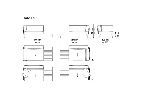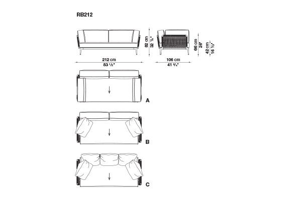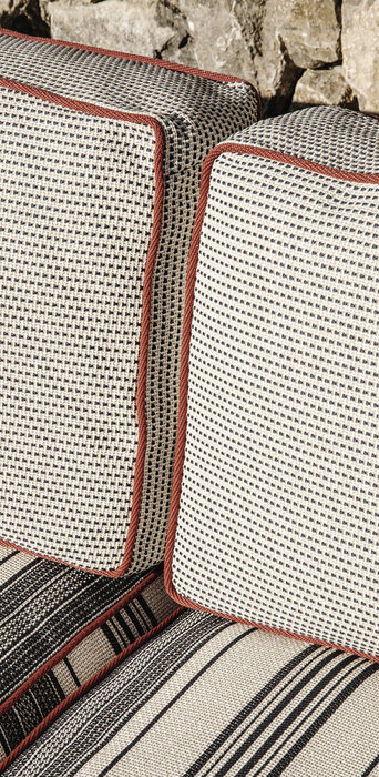 南米への何度もの旅行で集められた伝統的な布地の明確な配色にインスパイアされて、それを再構築して、最大限のカスタマイズを可能にするさまざまな組み合わせの幅広い選択肢を模索してシートクッション、バッククッション、アームクッションは、必要に応じて幅広や狭い縞と点線または単色の素材で互いが調和したさまざまな色合いで覆うことができます。