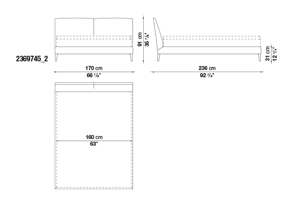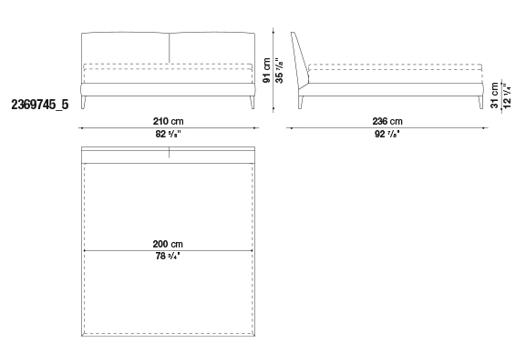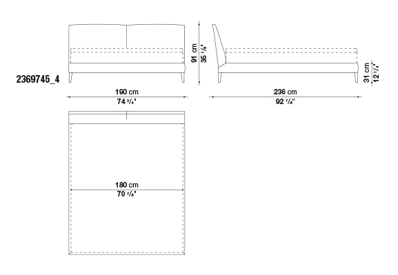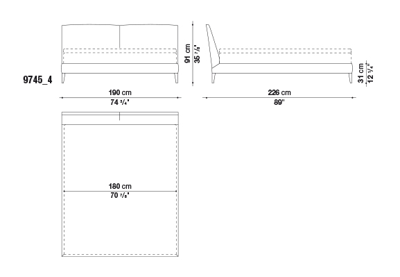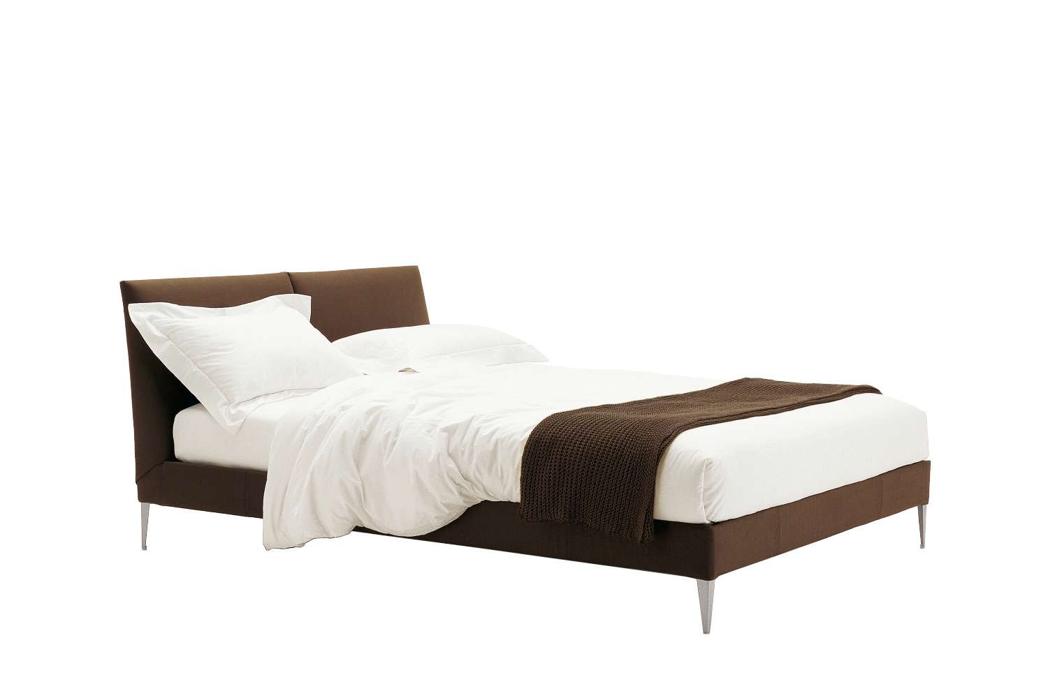 布張りのヘッドボードのカバーは完全に取り外すことができます。天板の幅は4種類あり、脚部はブライトクロームまたはブロンズニッケル塗装のスチール製、またはグレーオーク、ブラッシュドライトオーク、ブラッシュドブラックオーク無垢材を使用しています。