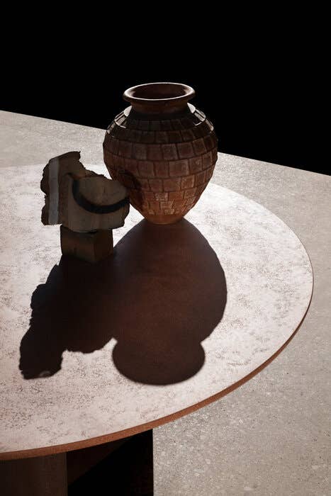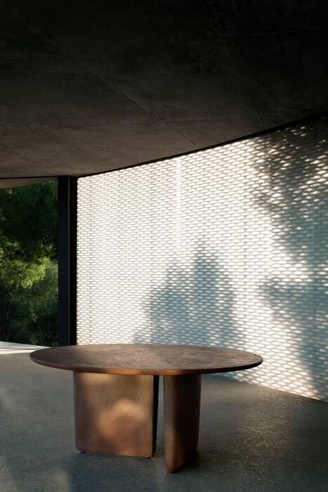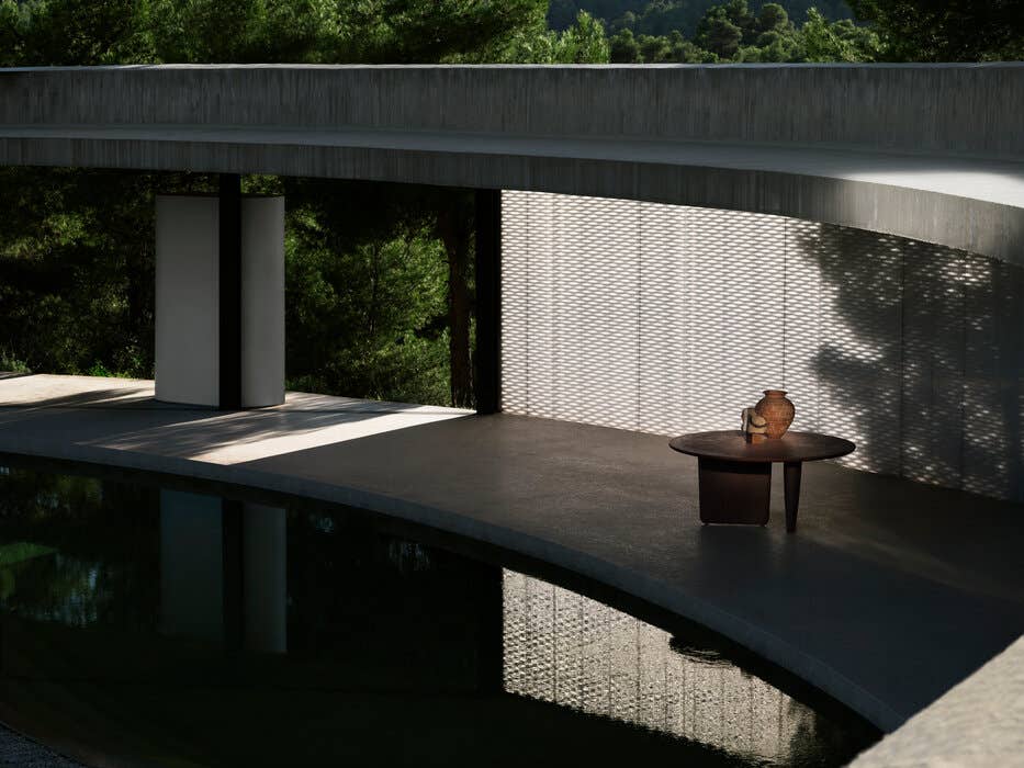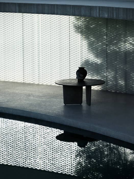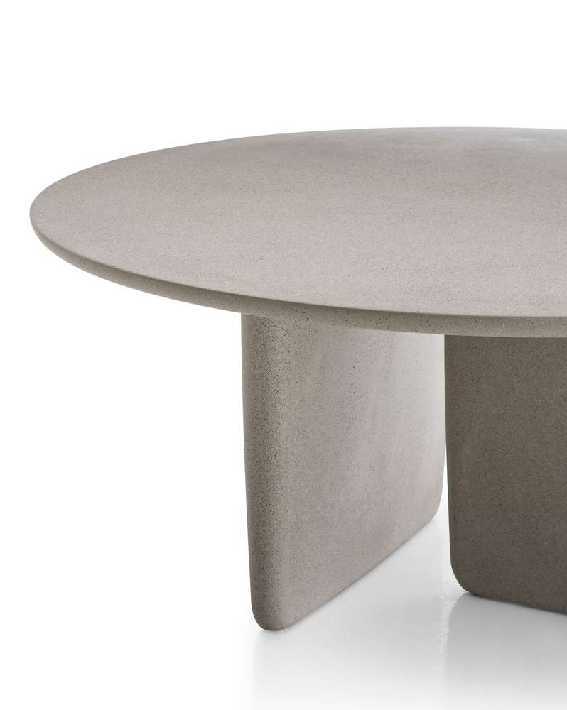 Tobi-Ishi<トビイシ>テーブルは、日本庭園に使われている飛び石をイメージして名付けられました。機能性と彫像のような外観の両方を兼ね備え、天板と台座の関係性は見る角度によってさまざまな表情となる美しいテーブルです。