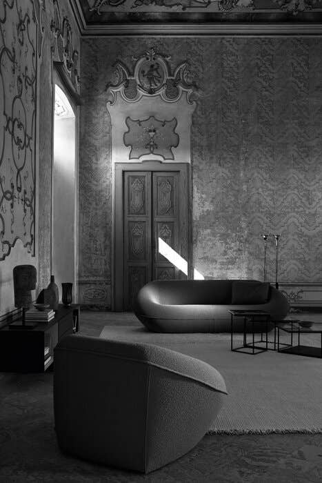 「<Tobi-Ishi (トビイシ)> のテーブルシリーズに続き、布張りのシーティングの新しいコレクションをデザインしました。彫刻的なフォルムの<Tortello(トルテッロ)>ソファとアームチェアは、ゆったりとしたプロポーションで、非常に柔らかく、究極の快適さをもたらします。形式にとらわれないフォルムはさまざまな座り方を可能にし、<Tortello(トルテッロ)>は注目の作品となるでしょう。」