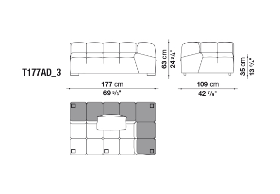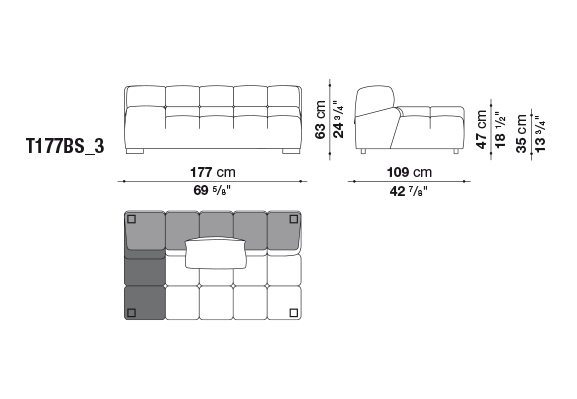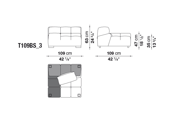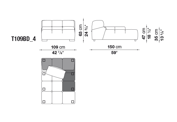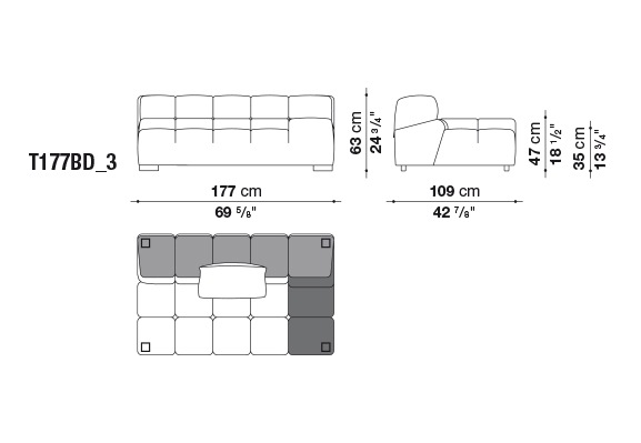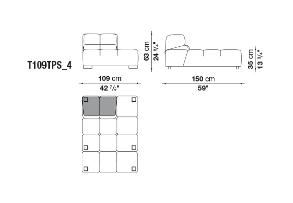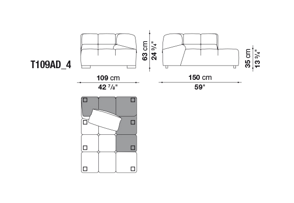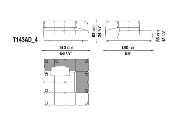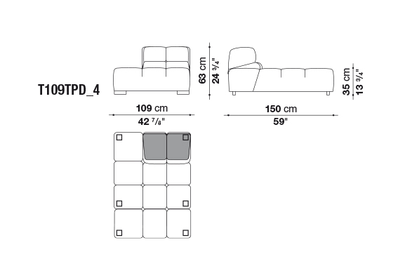 2005年、デザイナーのパトリシア・ウルキオラは、「私が大好きな1960年代と1970年代を特別に再解釈して、カピトーネとチェスターフィールドのスタイルを新たに見直したいと思いました」と語っています。チェスターフィールドとカピトーネスタイルを表現した「タフティタイム」は、自由でカジュアルなライフスタイルに合わせて、それらをモダンにアレンジしています。このシステムは、モジュール性、快適性、取り外し可能なカバーというテーマに対して、伝統的な直線的なソファ、コーナーソファ、シェーズロングのコンポジション、360度座れるアイランドソファなど、さまざまな要素を形成することで効果的な答えを導き出しています。レザーまたはファブリックの張り地は、大きな正方形に分割され、プリーツによって結合されています。レザーバージョンでは、パンチング加工が施されています。