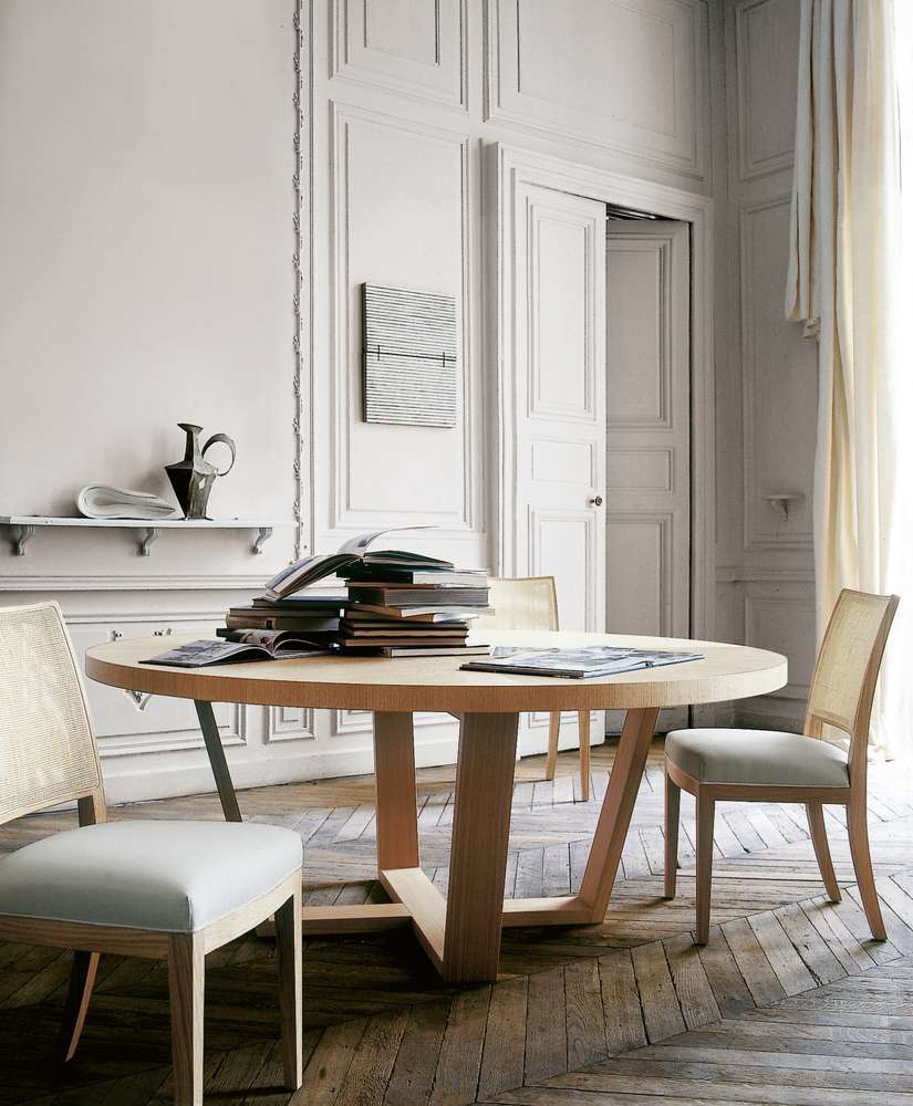 Xilos<キロス>テーブルコレクションは、木製の十字型フレームが特徴的なテーブルです。ラウンドタイプには大理石の天板もあり、2つのサイズと異なる仕上げ(フレームと同じ種類の木材または大理石の天板)の回転式トレイと組み合わせることができます。