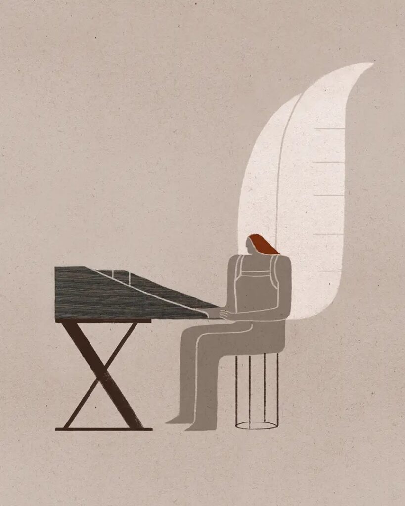 絵本の制作などプロフェッショナルな活動と並行して、個人的なイラストレーションの創作にも取り組み、