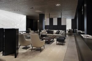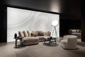そしてソファコレクションには、Apollo、Aurae、Amoenus Soft、Otium Soft が新たに加わりました。いずれも、清廉で整然としたラインと、やわらかで包み込むような快適性を兼ね備え、マクサルトの“タイムレスなエレガンス”を体現しています。